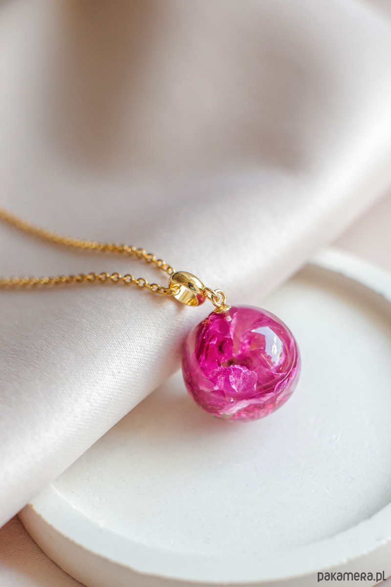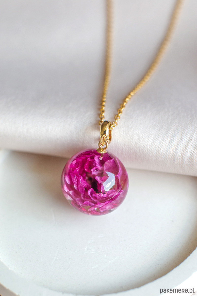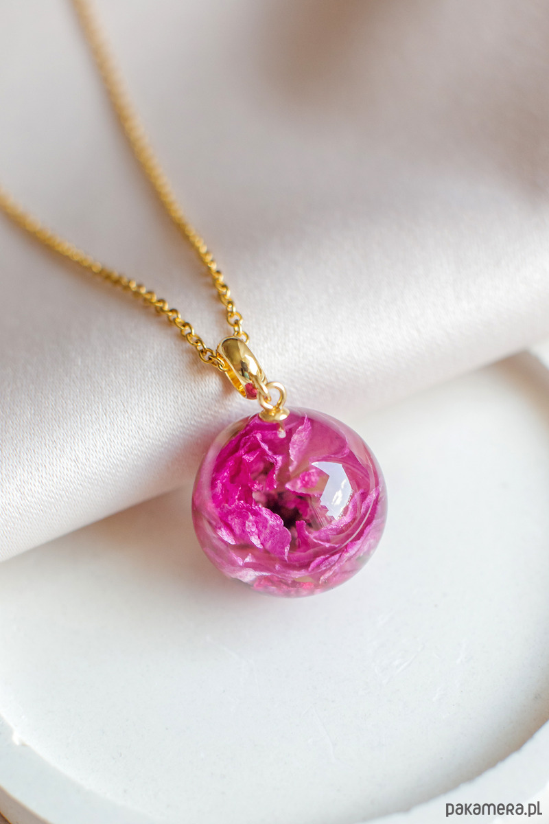 Wisiorek wykonany jest z żywicy epoksydowej z wykorzystaniem suszonych kwiatów. Metalowe elementy to stal nierdzewna szlachetna chirurgiczna.