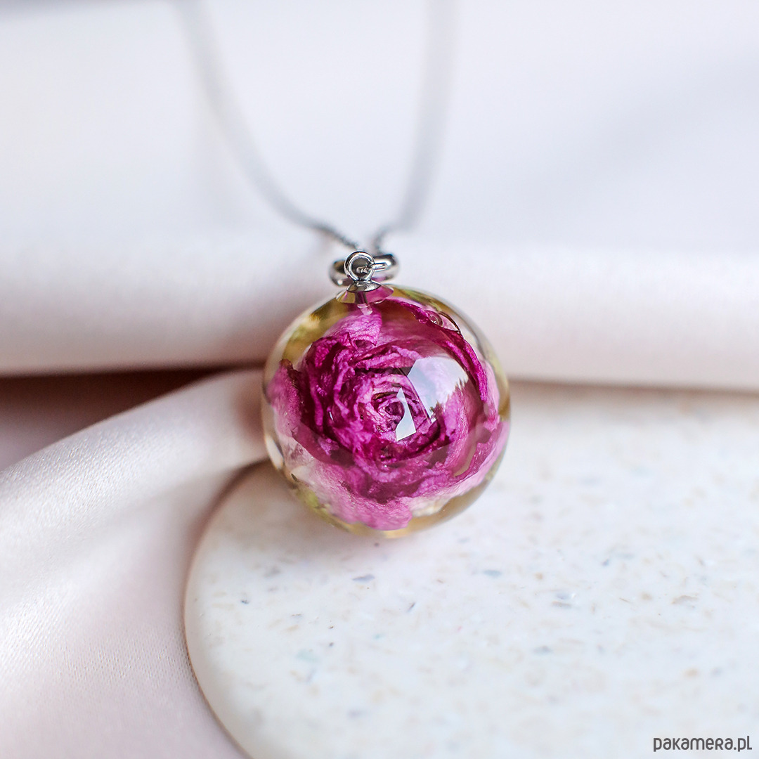 Wisiorek wykonany jest z żywicy epoksydowej z wykorzystaniem suszonych kwiatów. Metalowe elementy to stal nierdzewna szlachetna chirurgiczna.