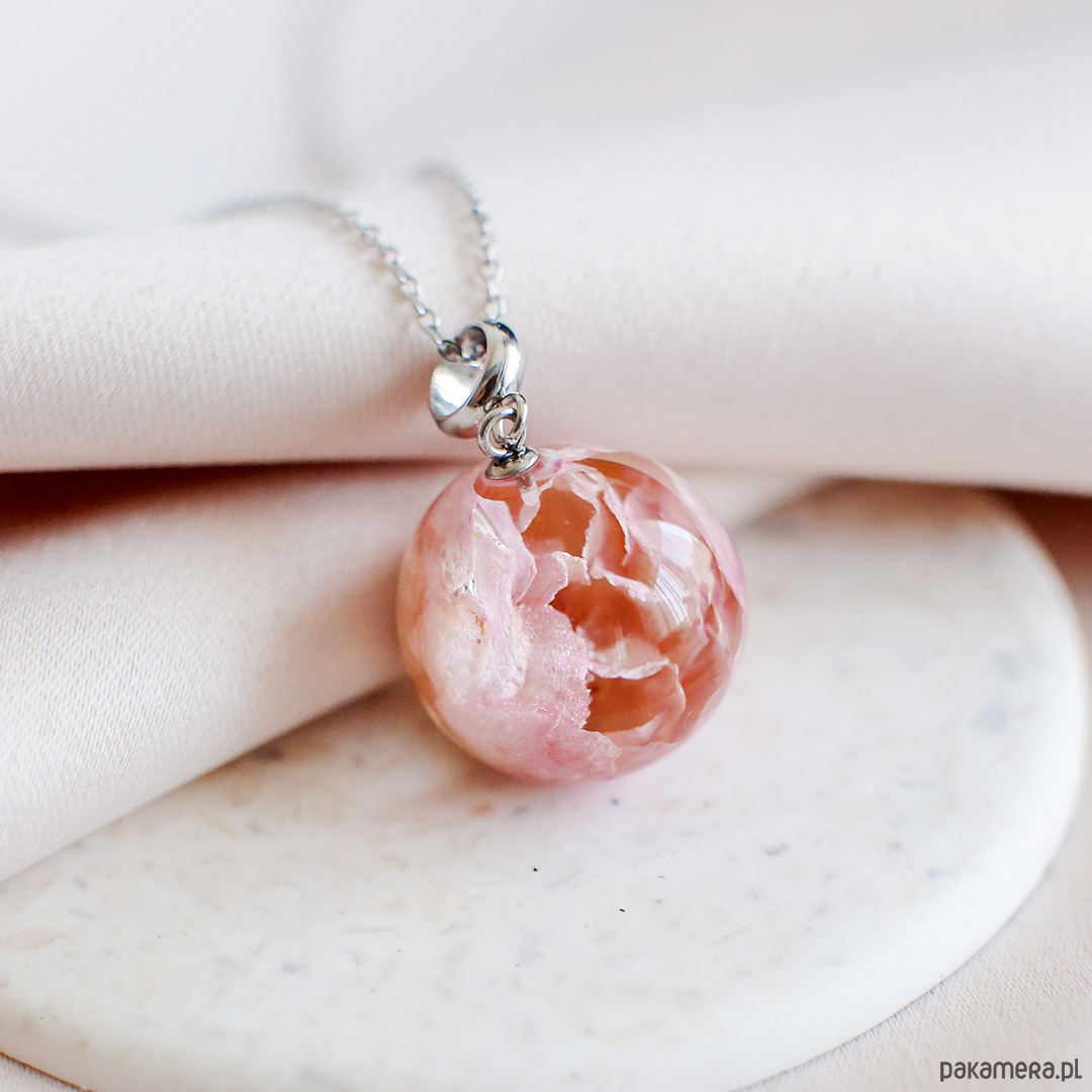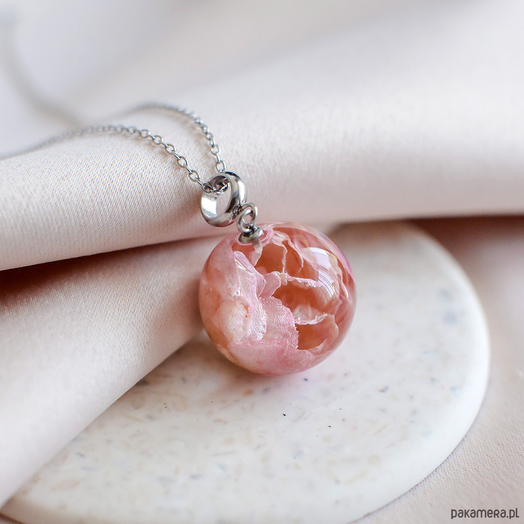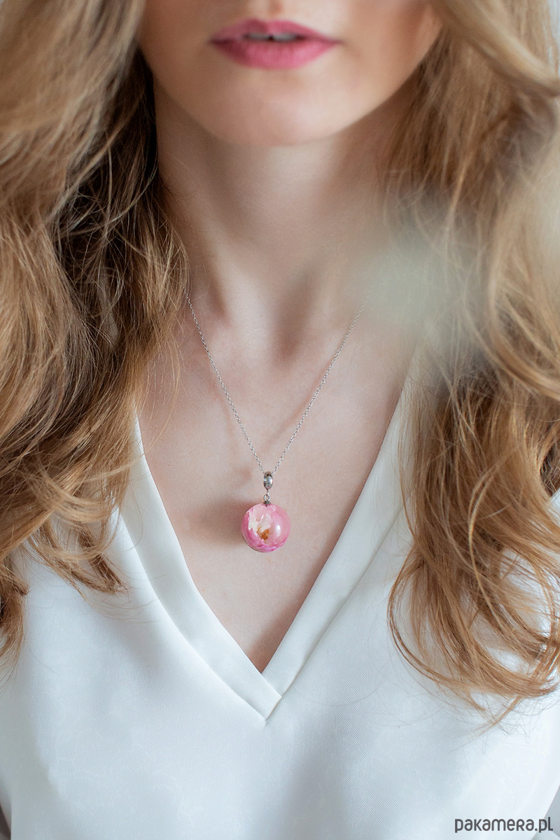 Wisiorek wykonany jest z żywicy epoksydowej z wykorzystaniem suszonych kwiatów. Metalowe elementy to stal nierdzewna szlachetna chirurgiczna.