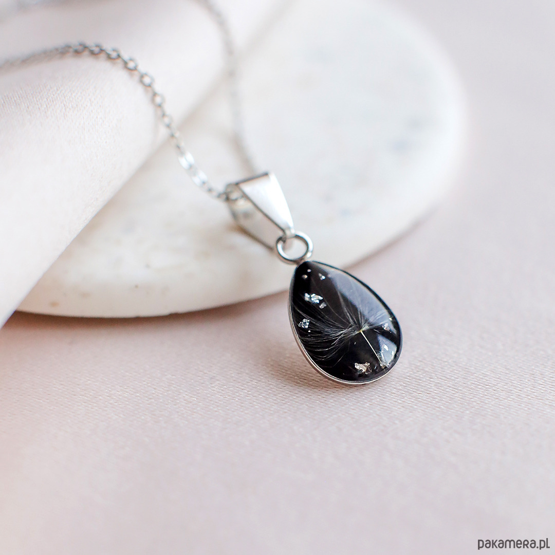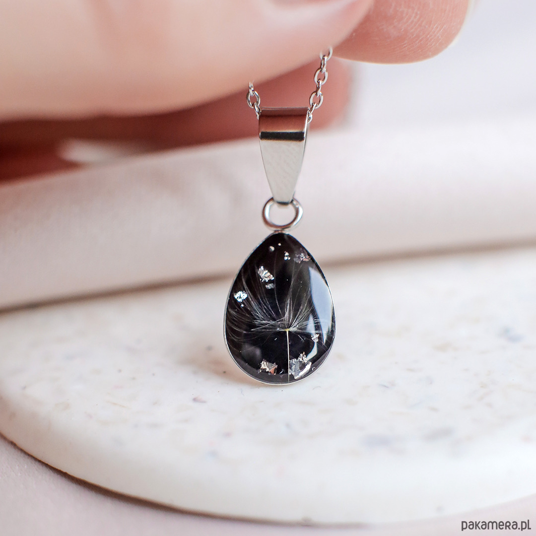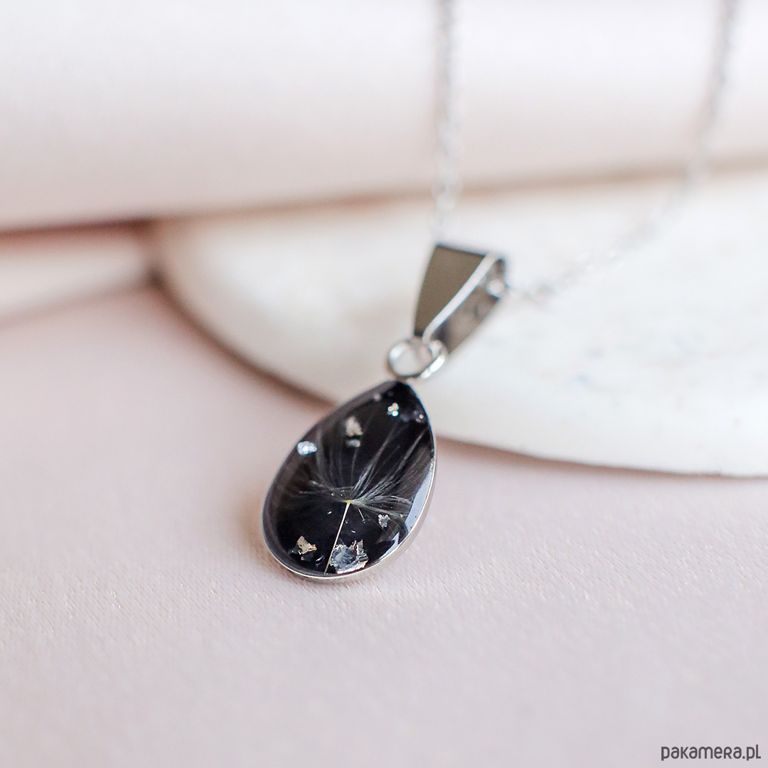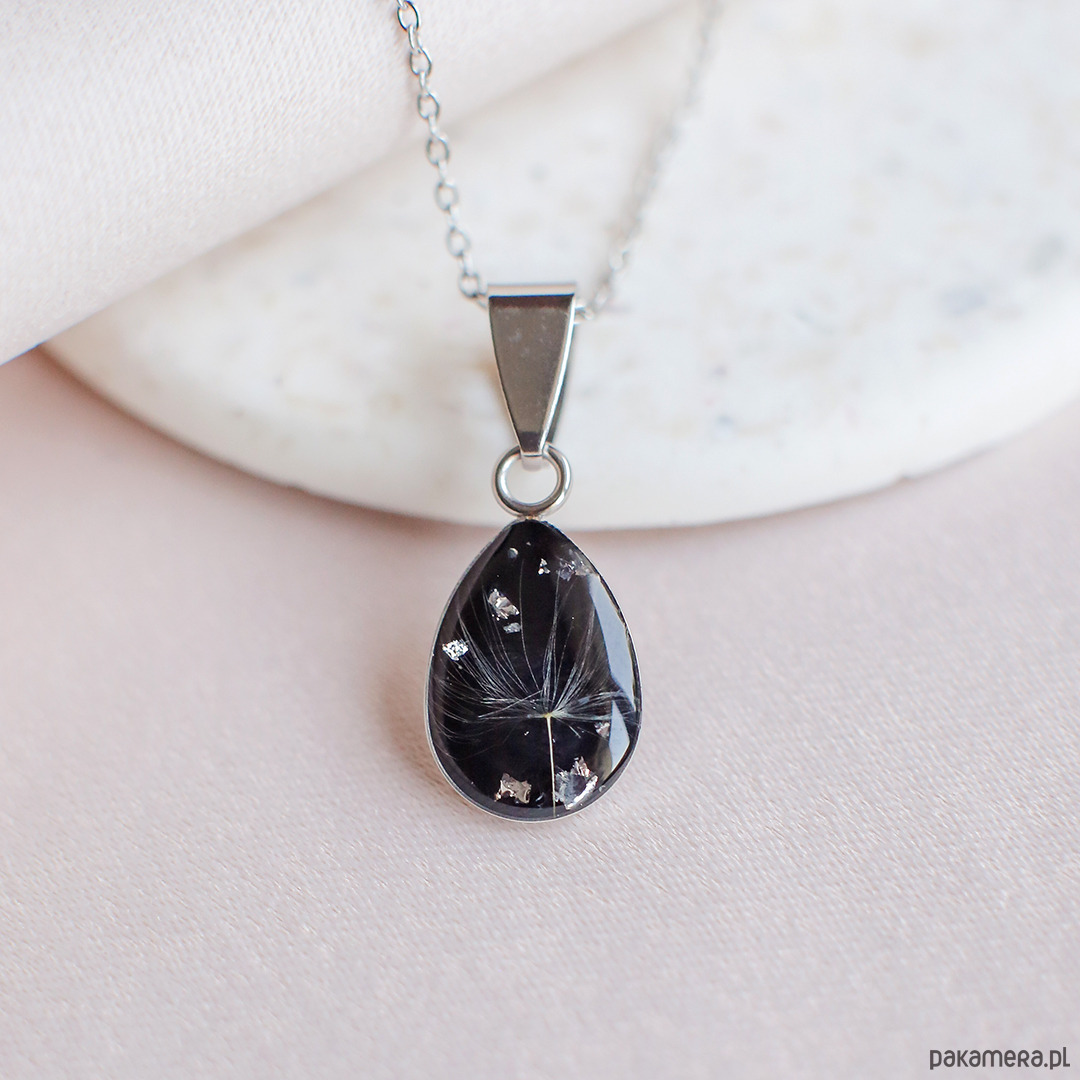 Wisiorek wykonany jest z żywicy epoksydowej z wykorzystaniem suszonych kwiatów. Metalowe elementy to stal nierdzewna szlachetna chirurgiczna.