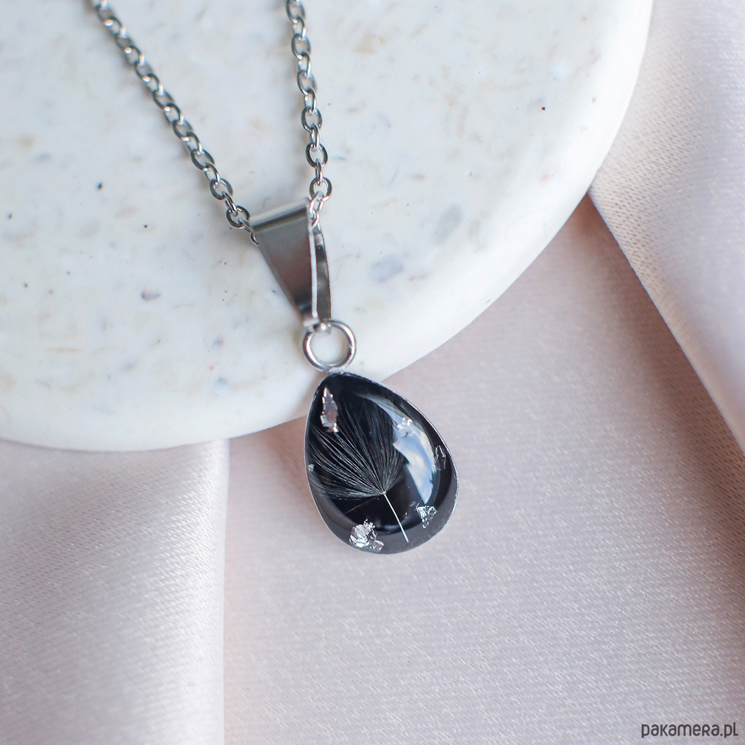 Wisiorek wykonany jest z żywicy epoksydowej z wykorzystaniem suszonych kwiatów. Metalowe elementy to stal nierdzewna szlachetna chirurgiczna.