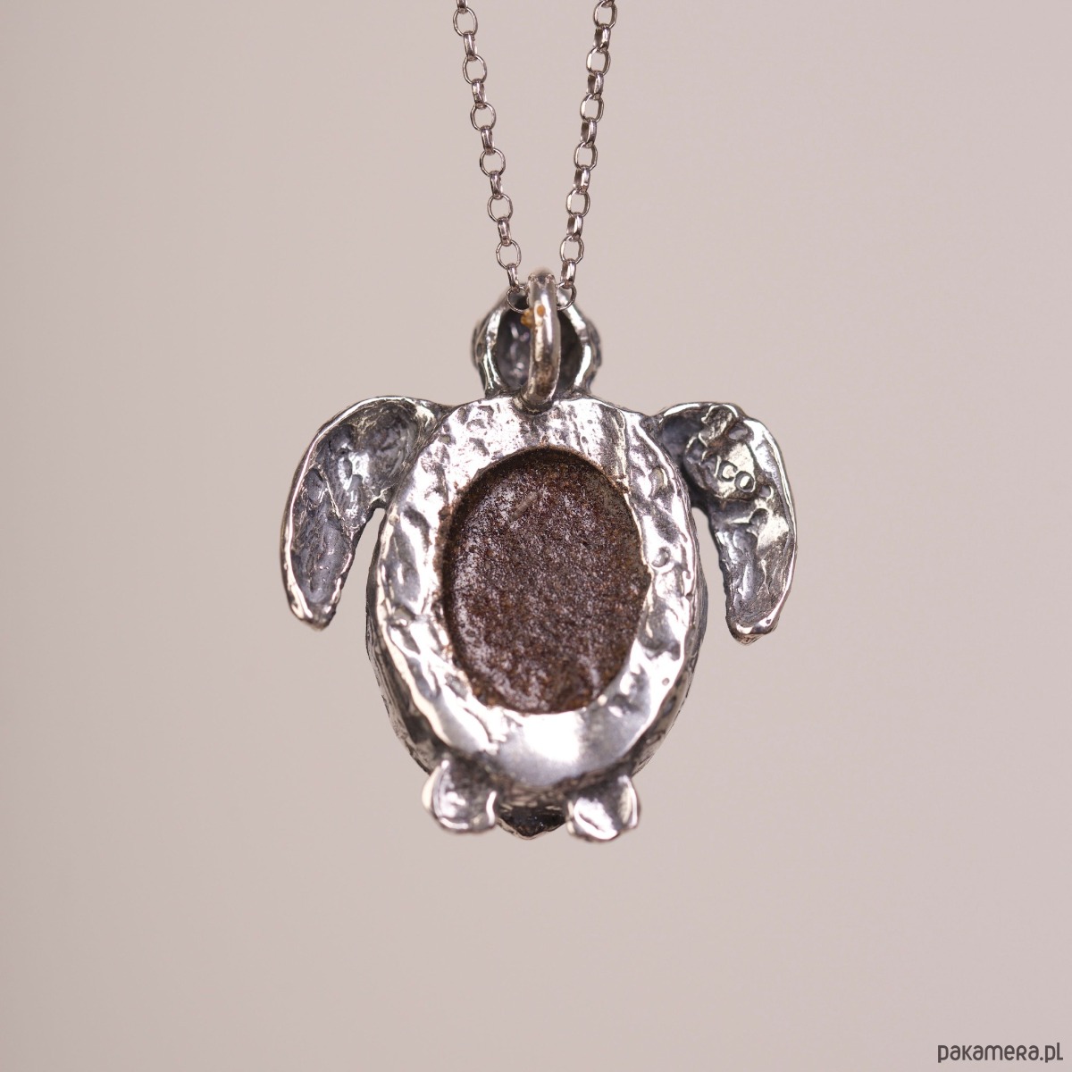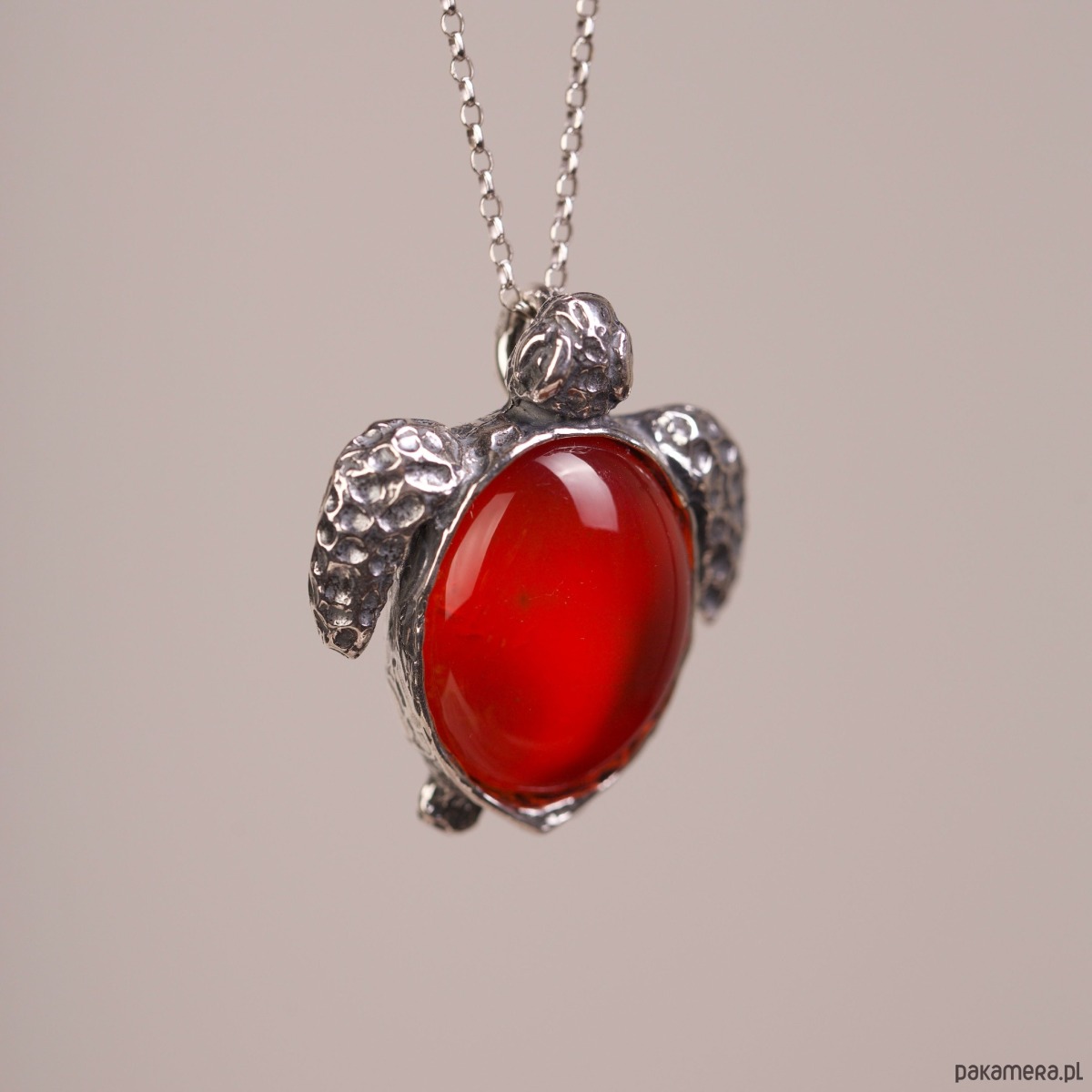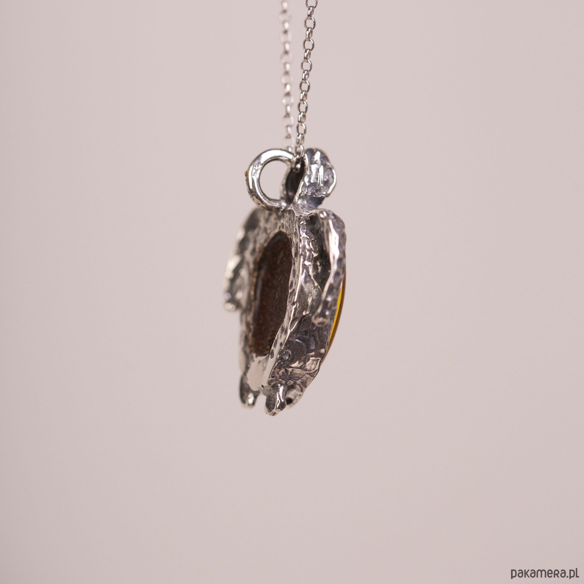 Wisiorek z żółwiem i bursztynem bałtyckim barwionym