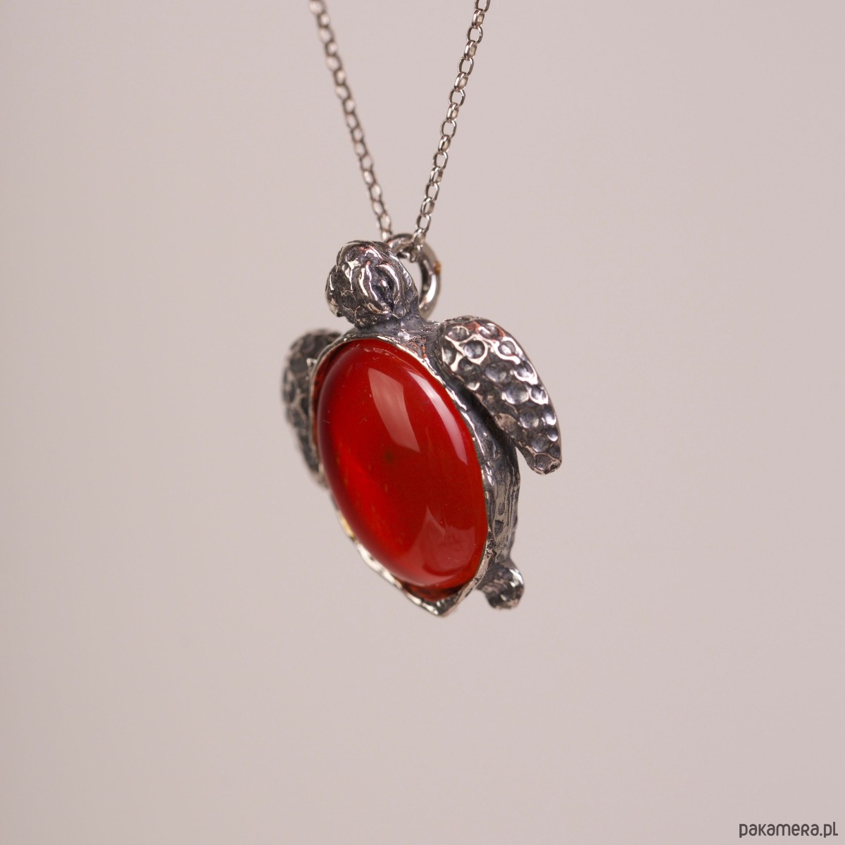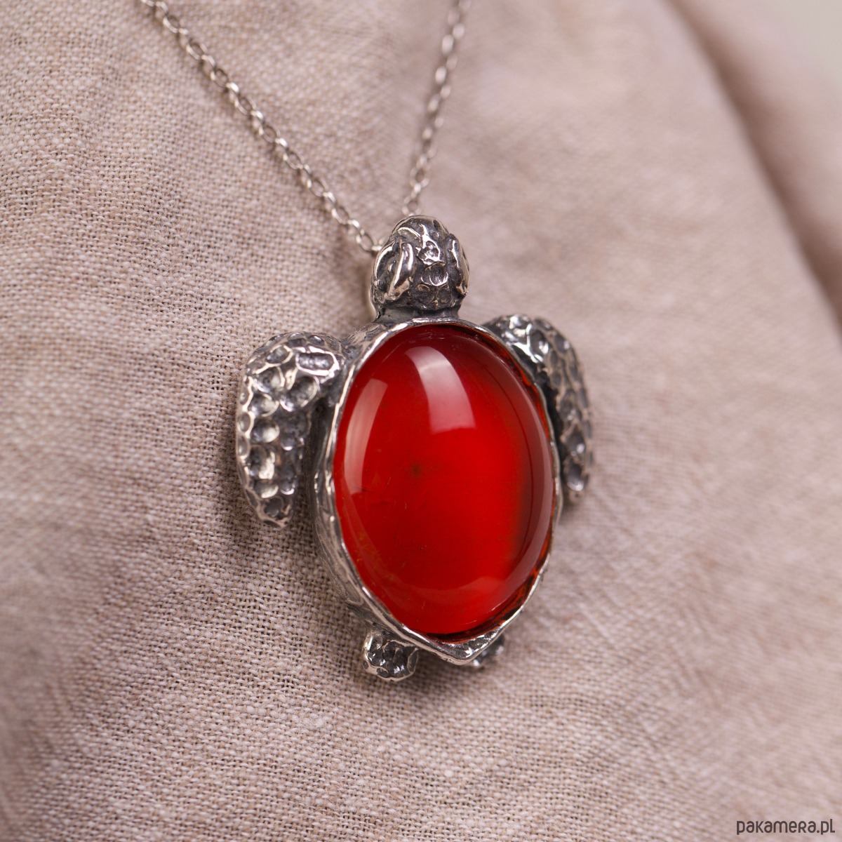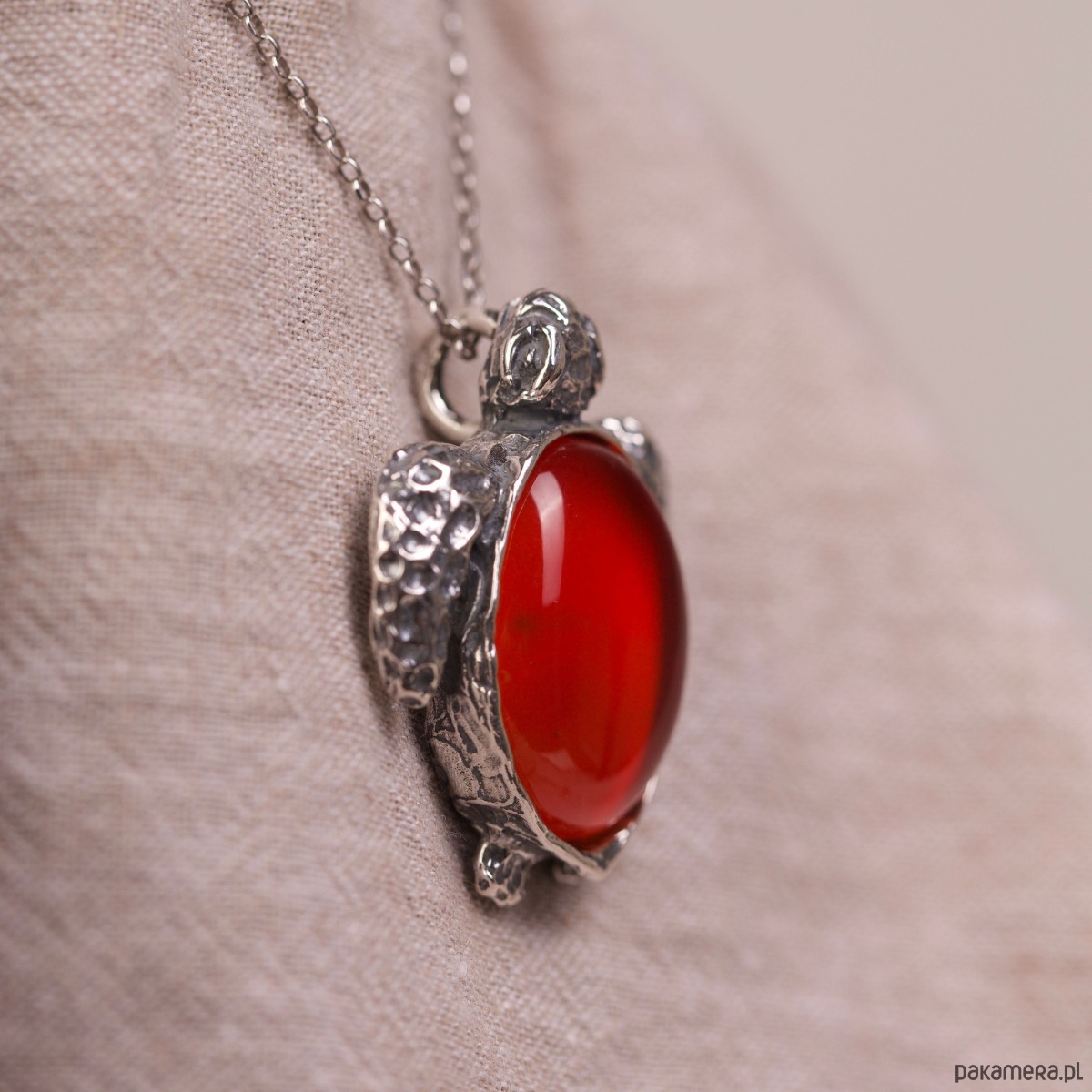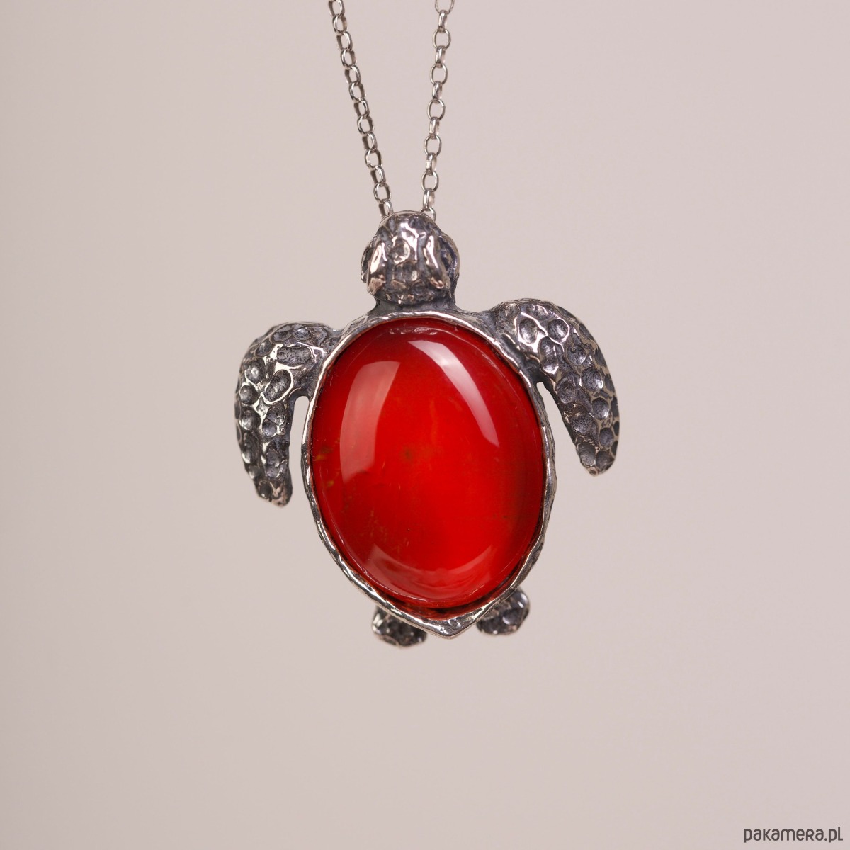 Wisiorek z żółwiem i bursztynem bałtyckim barwionym