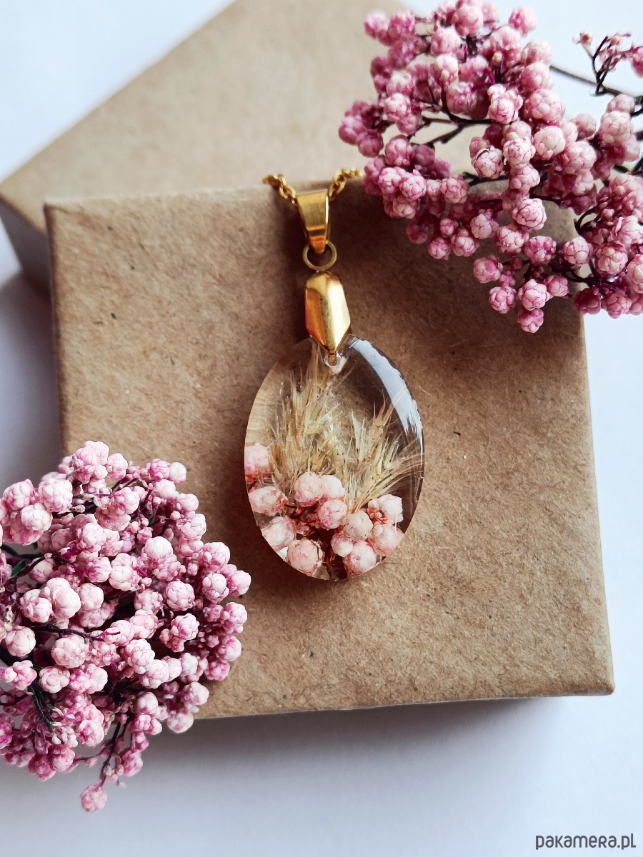 Wisiorek z żywicy z suszonymi kwiatami