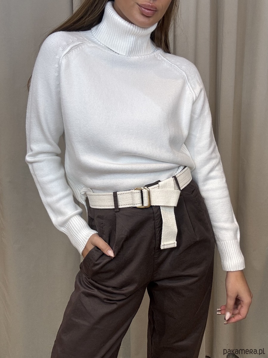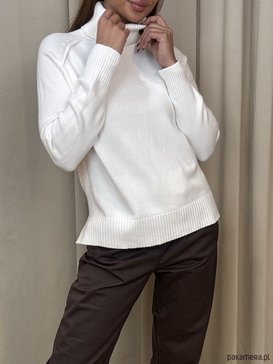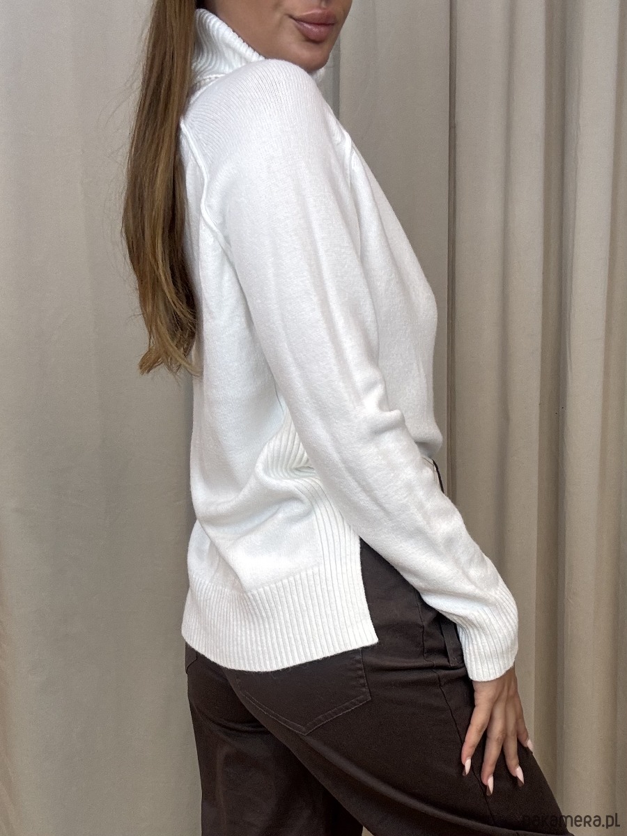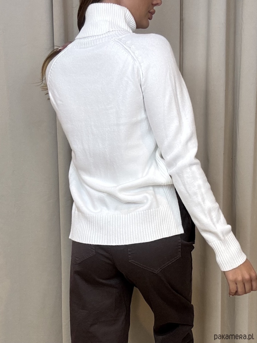 Wiskozowy golf z delikatnie wydłużonym tyłem.