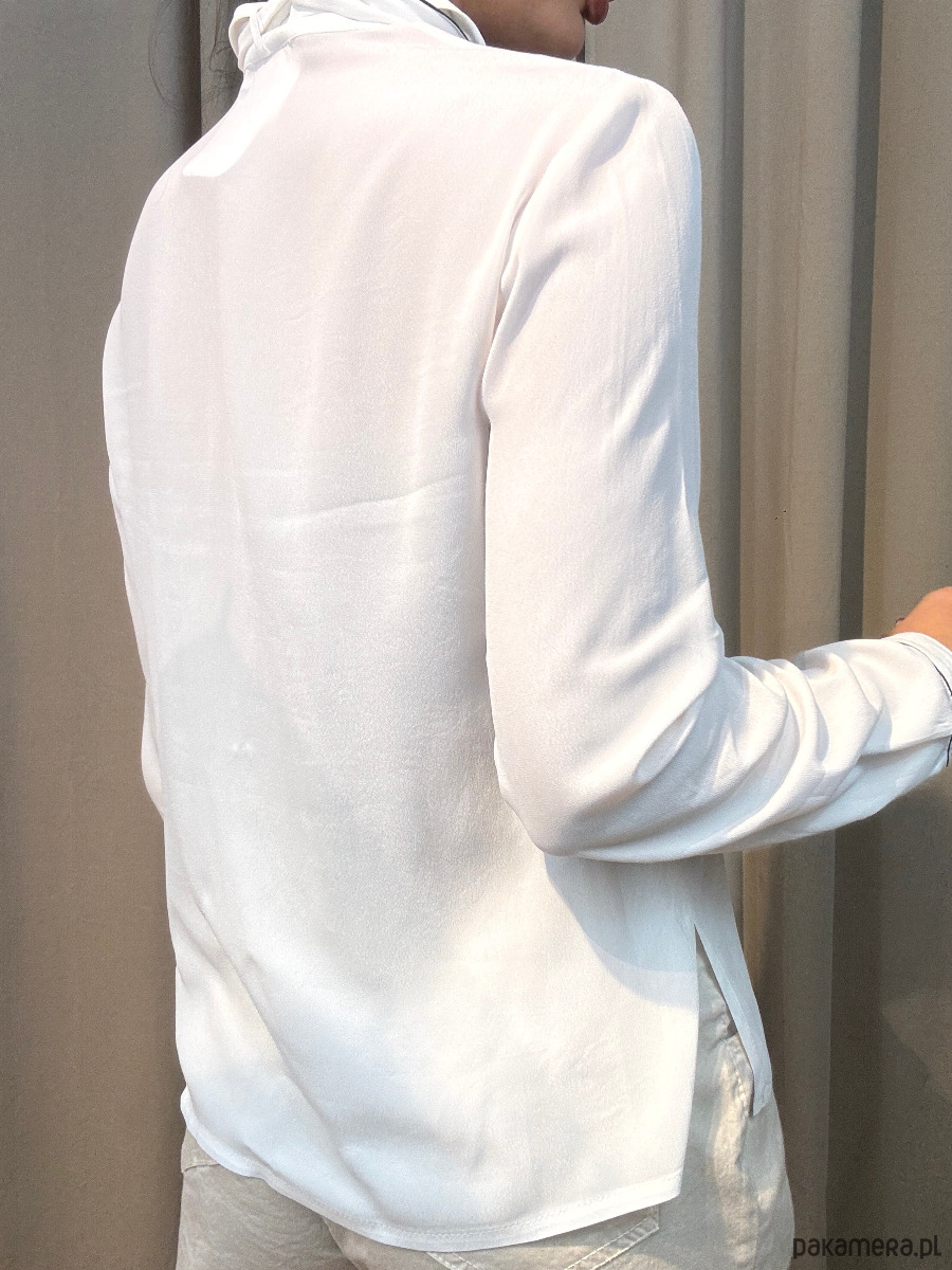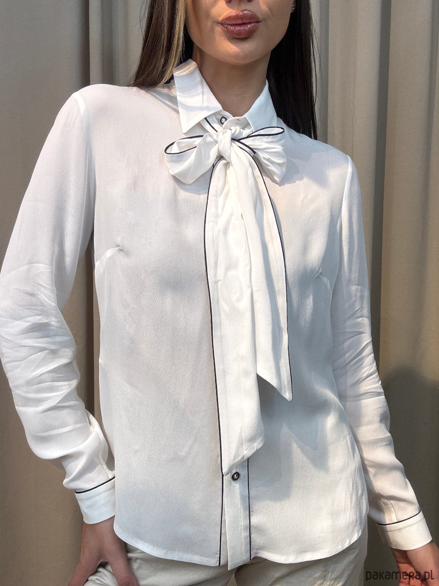 Wiskozowa koszula z kokardą, zapinana na guziki.