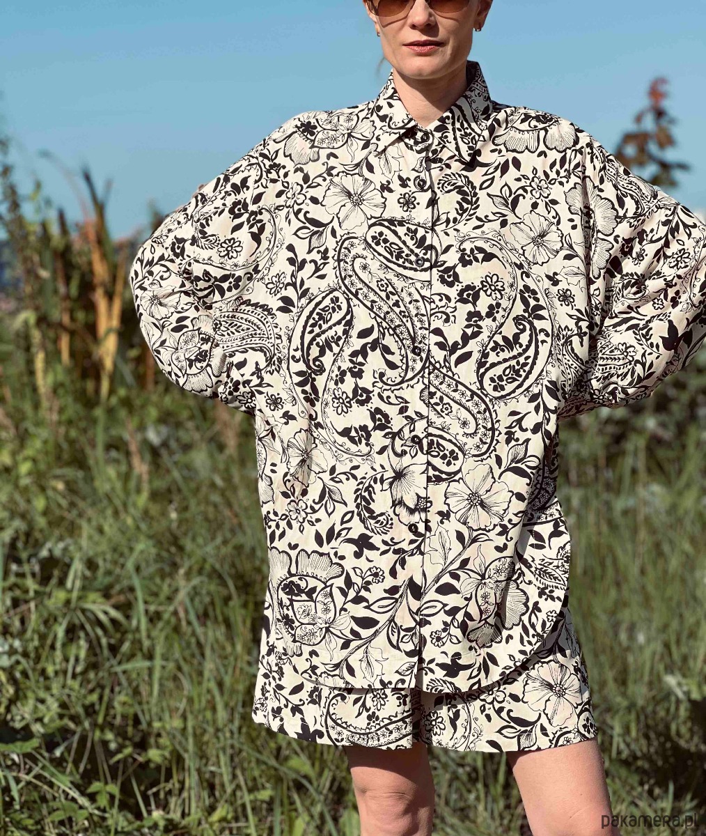 Uszyte z ultralekkiej, nieprzezroczystej wiskozowej tkaniny, zapewniają komfort w upalne dni, a wysoki stan pięknie podkreśla talię. Długość przed kolano i szeroka nogawka dodają im nonszalanckiego szyku, a szlufki w pasie pozwalają dobrać elegancki pasek, by nadać całości indywidualny charakter.