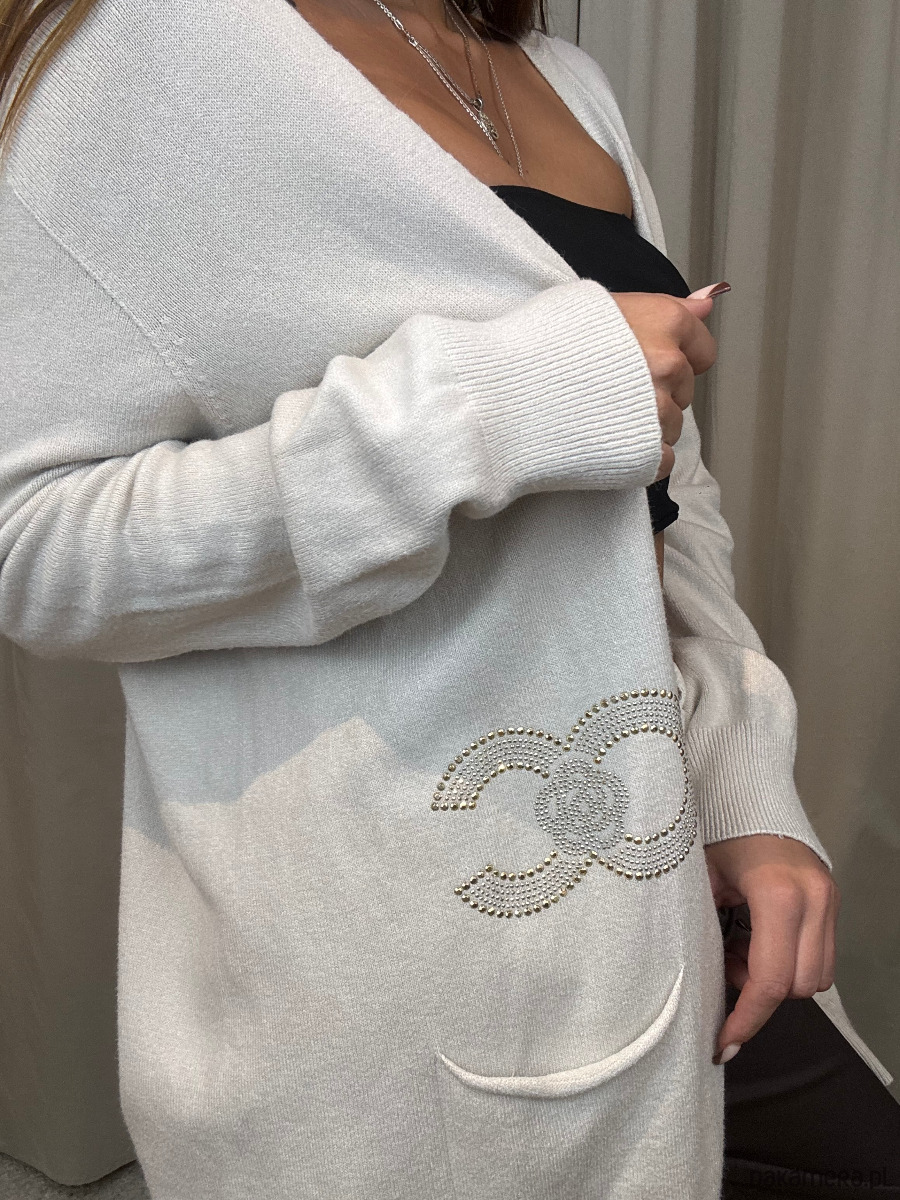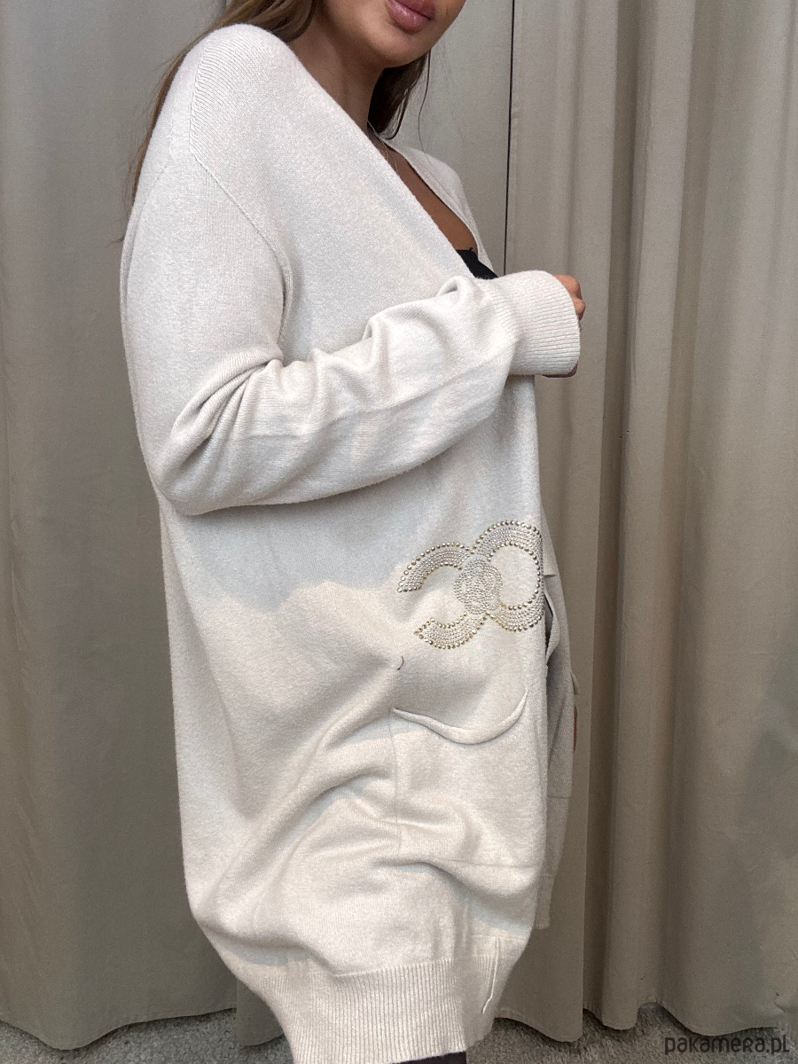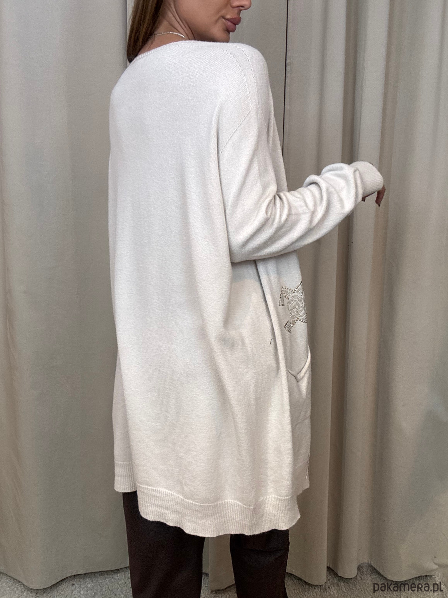 Wiskozowy sweter damski ze złotymi zdobieniami.