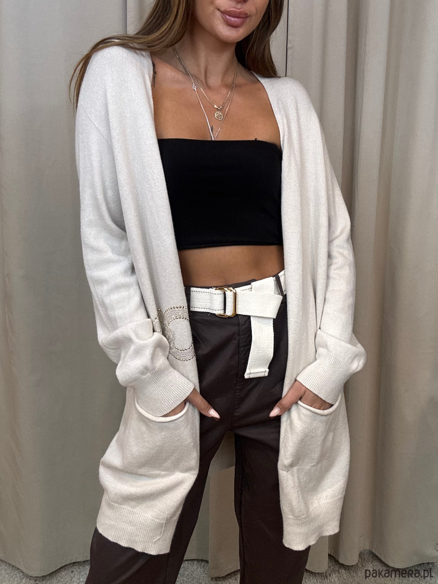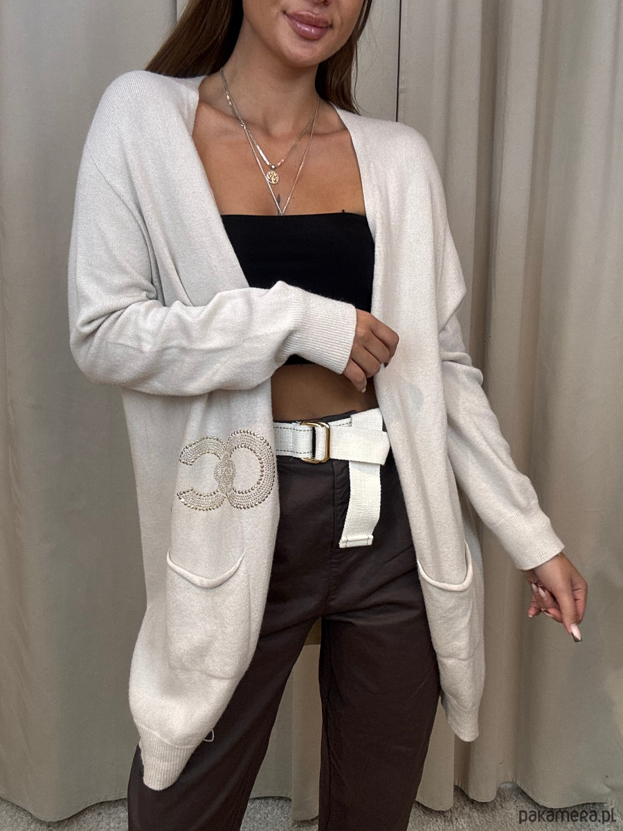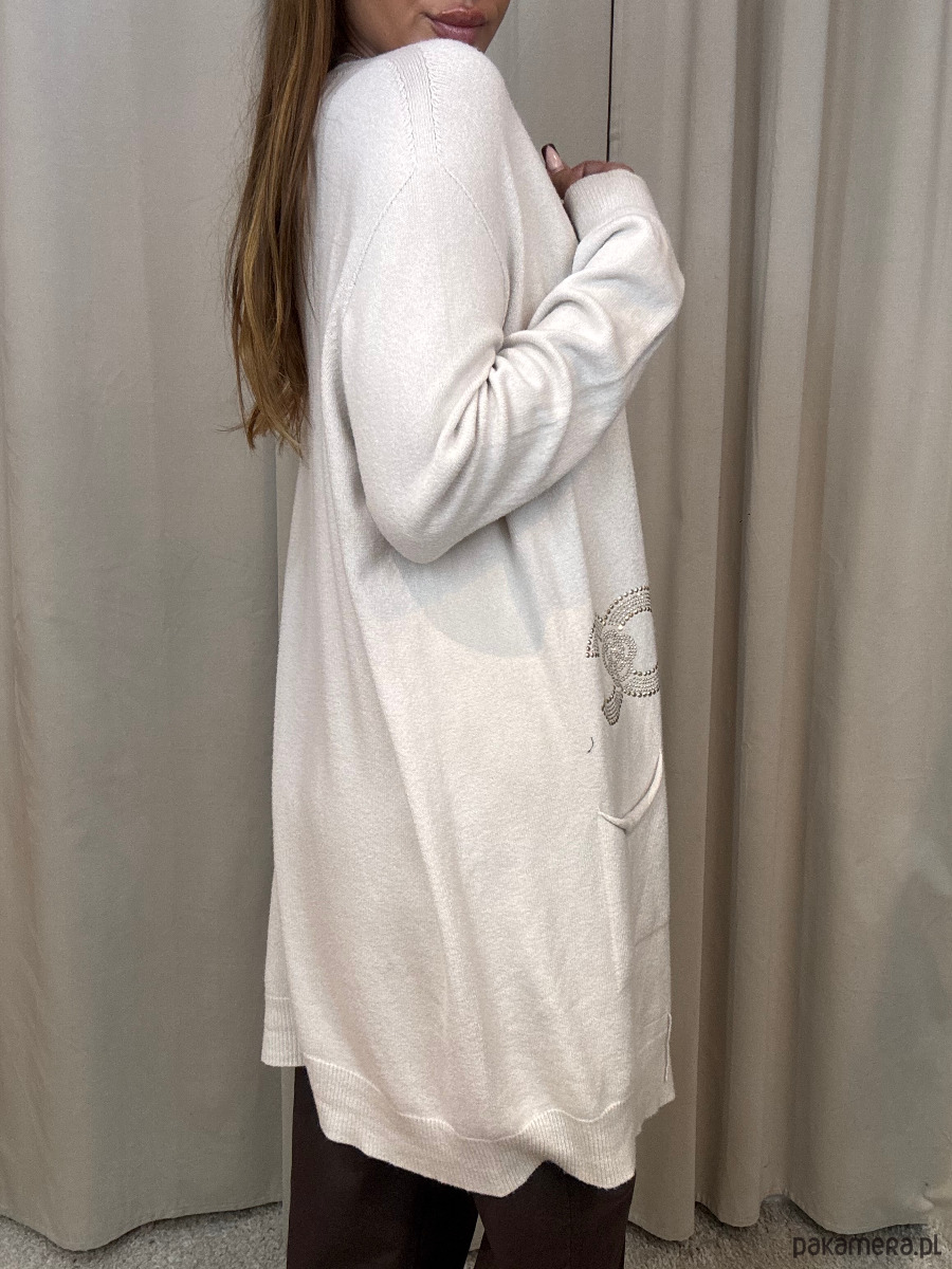Wiskozowy sweter damski ze złotymi zdobieniami.