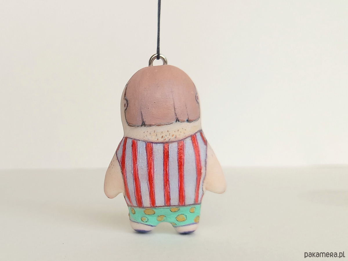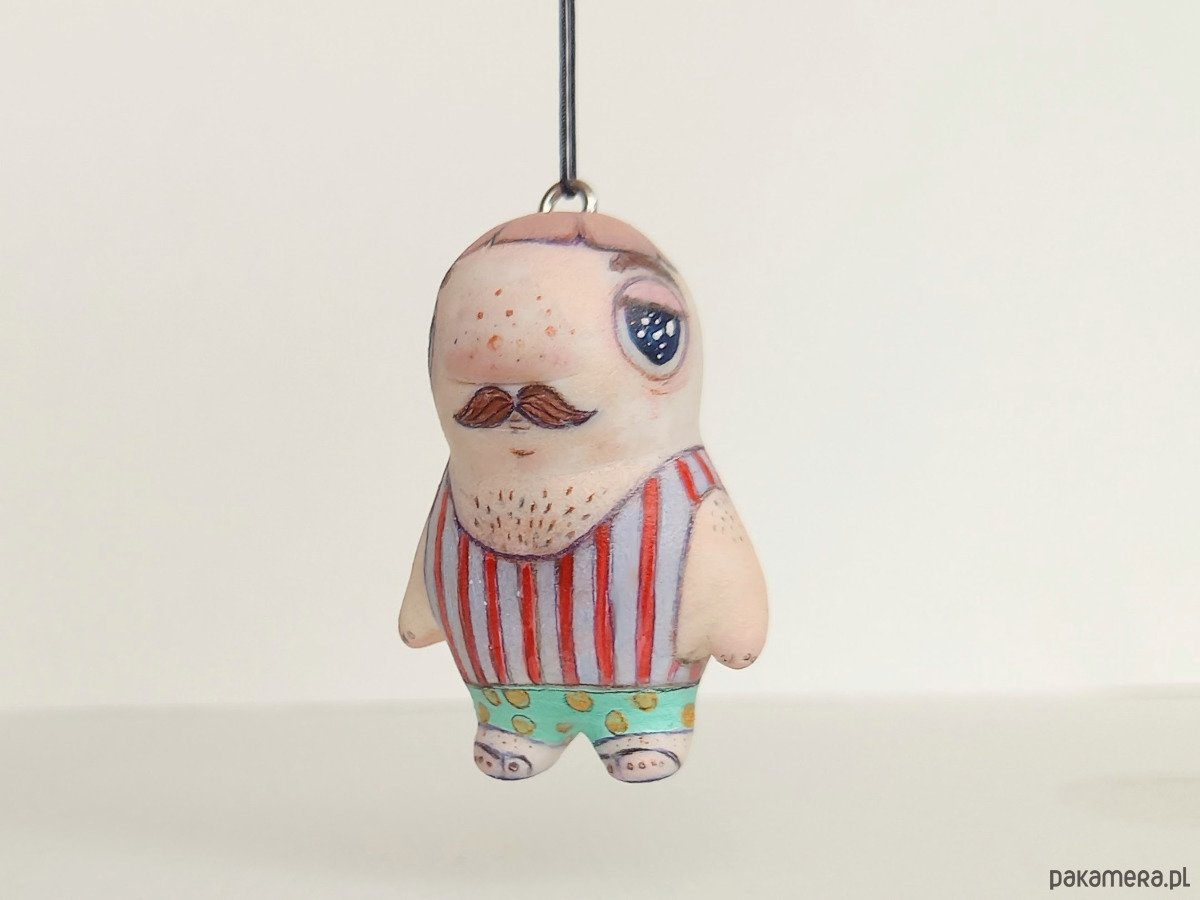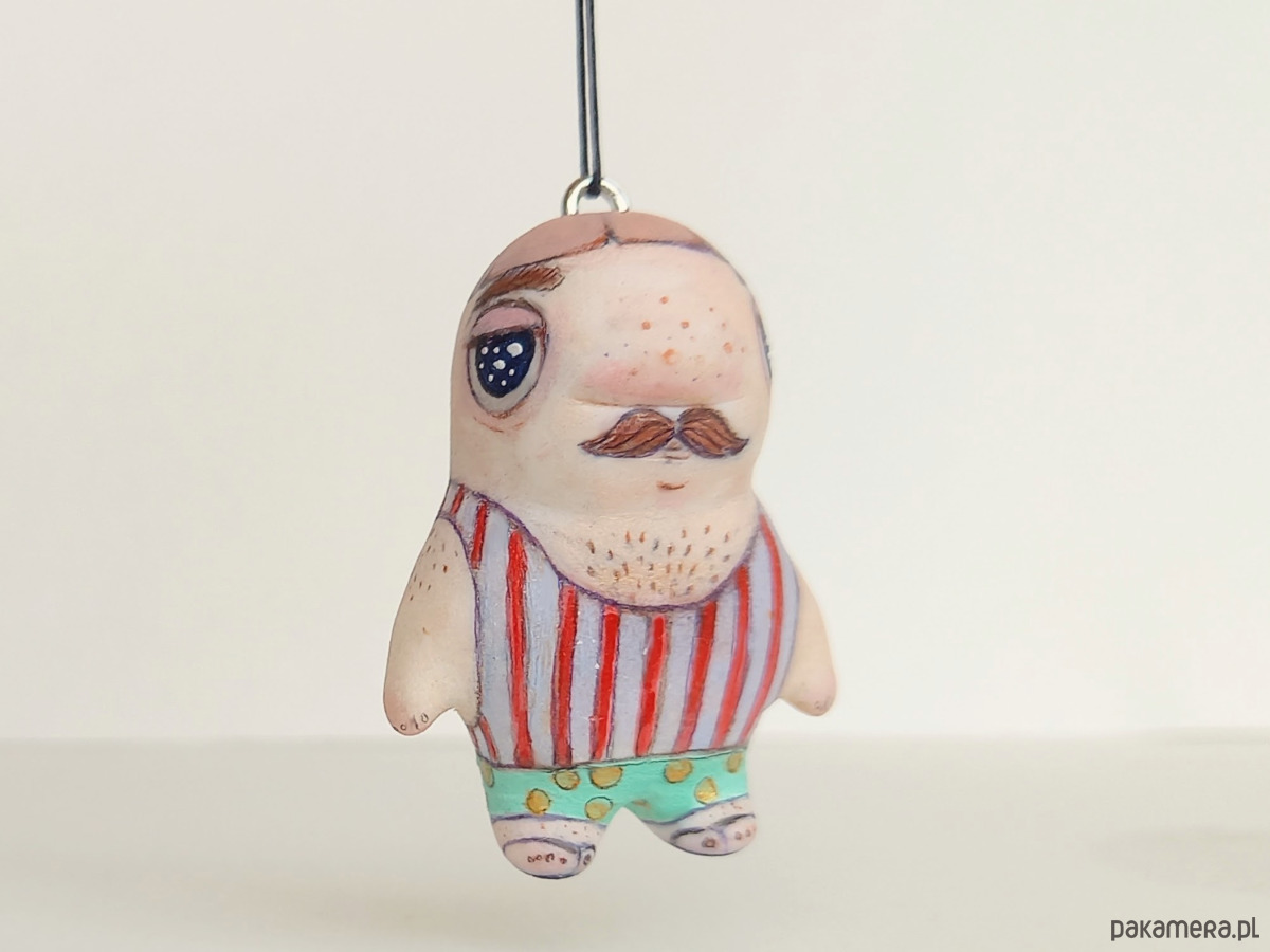 Miniaturowa wisząca figurka przedstawiająca plażowicza Mariana, korzystającego z ostatnich dni lata, została wykonana z gliny polimerowej, malowana farbami akrylowymi oraz tuszem, następnie pokryta werniksem i lakierem akrylowym.