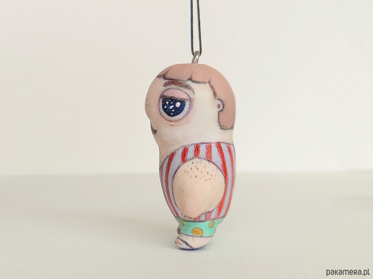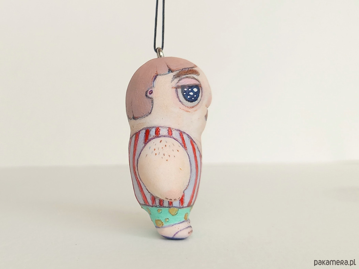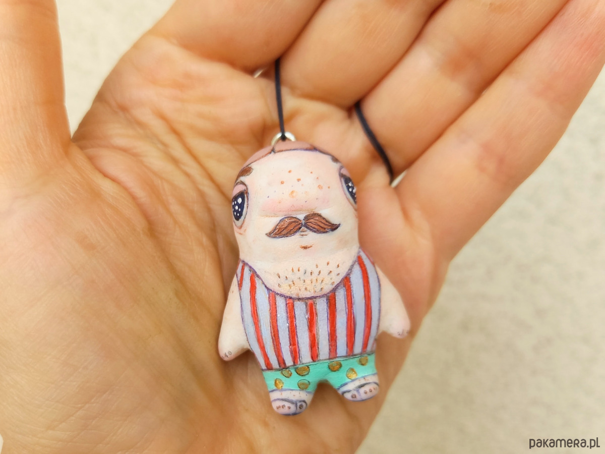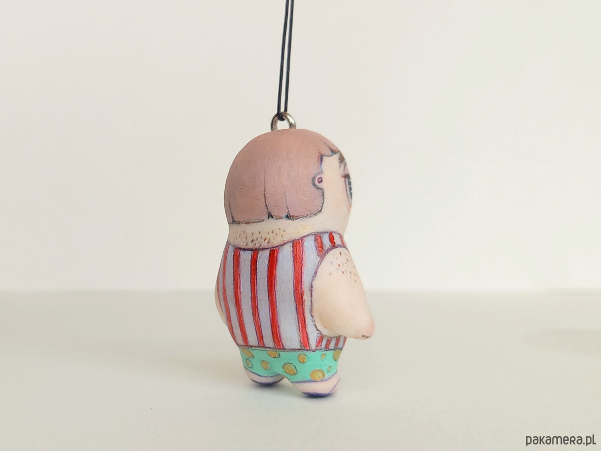 Miniaturowa wisząca figurka przedstawiająca plażowicza Mariana, korzystającego z ostatnich dni lata, została wykonana z gliny polimerowej, malowana farbami akrylowymi oraz tuszem, następnie pokryta werniksem i lakierem akrylowym.