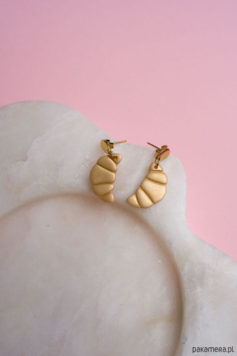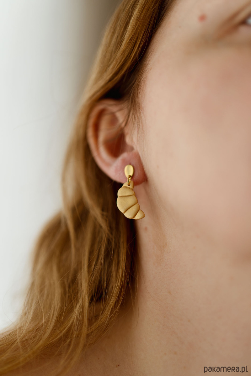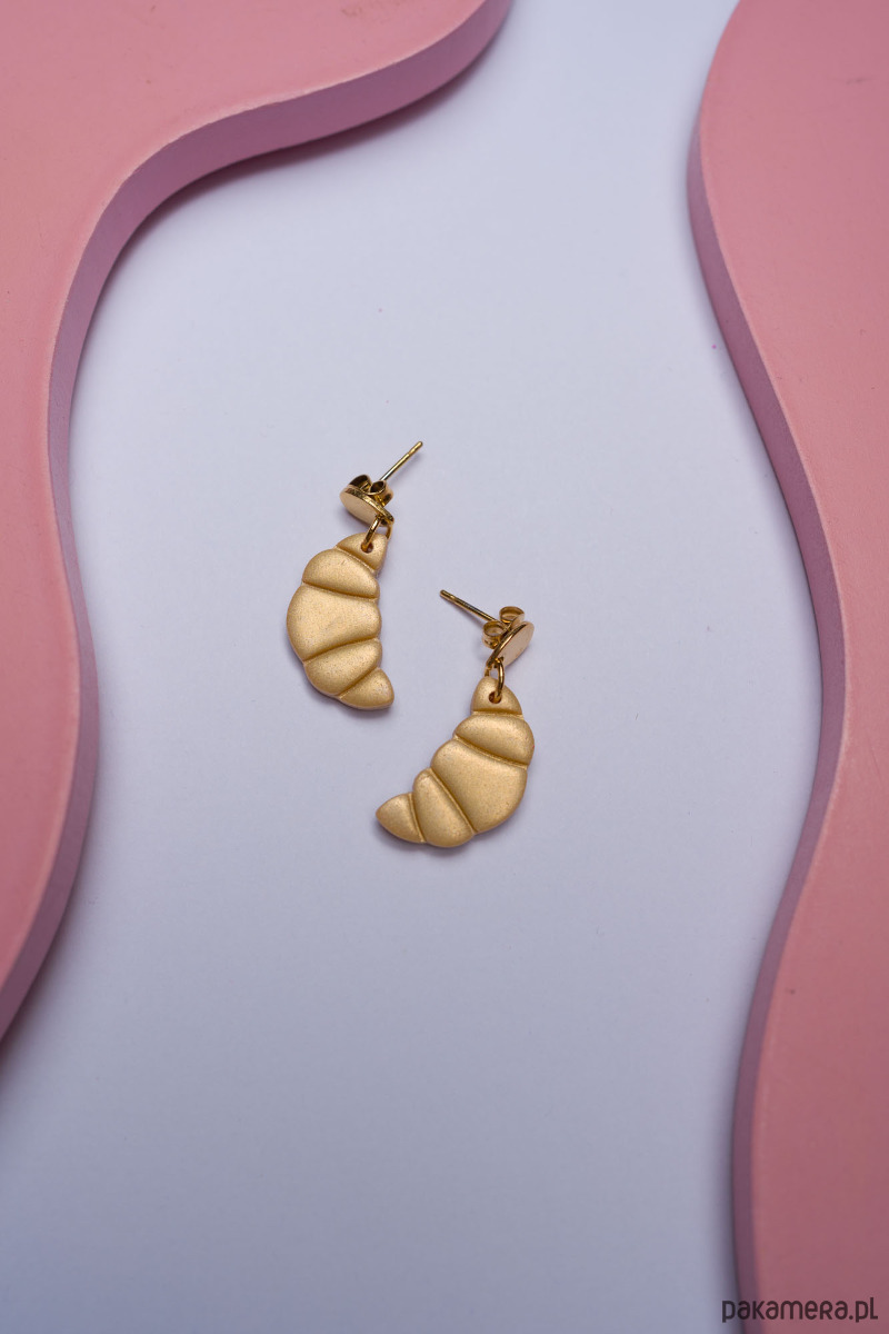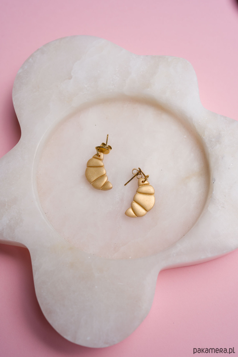 Kolczyki croissanty. Każdy element jest wykonany, wycinany i szlifowany ręcznie z dbałością o każdy szczegół. Wzór może nieznacznie różnić się, ponieważ każda para jest wykonywana ręcznie.