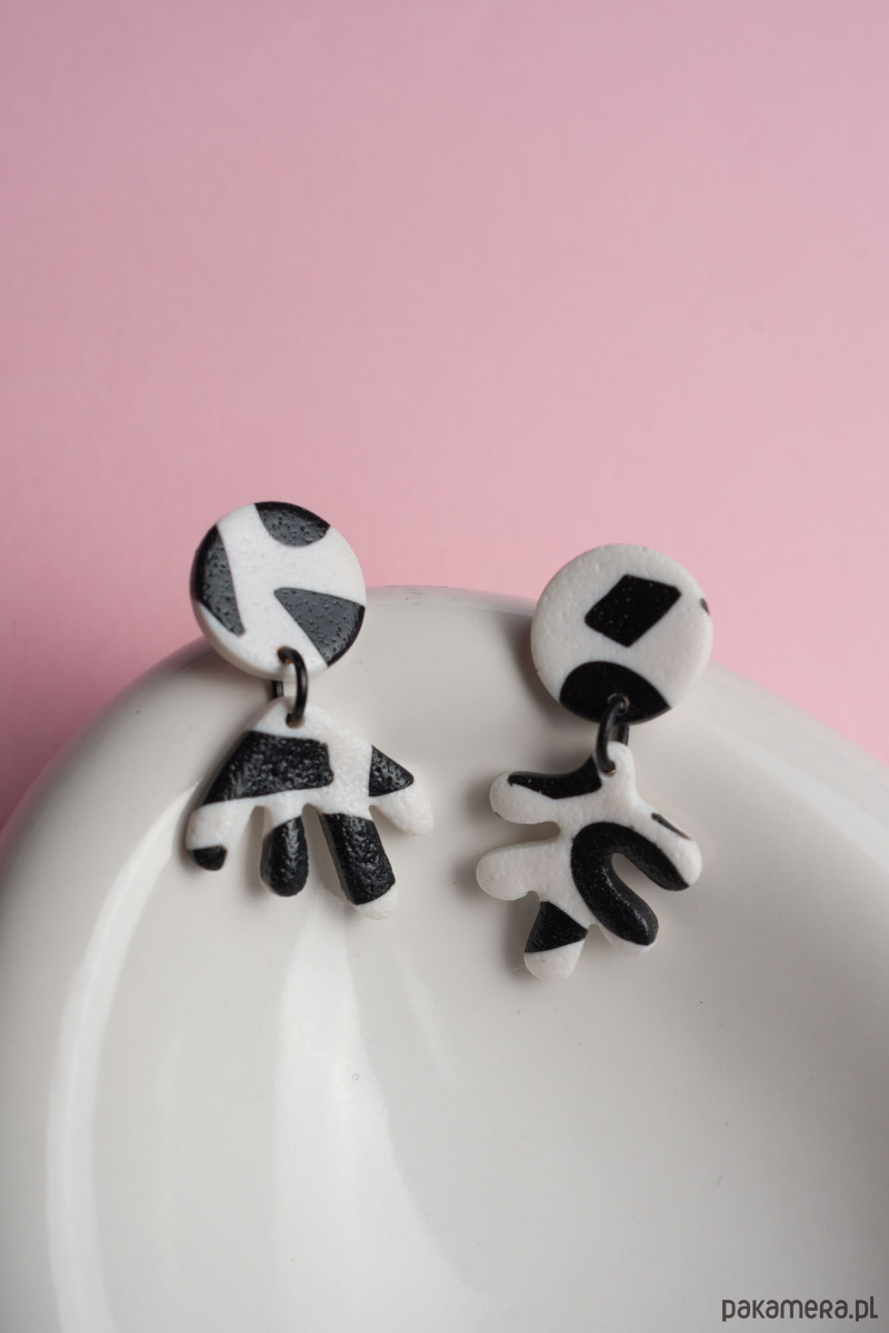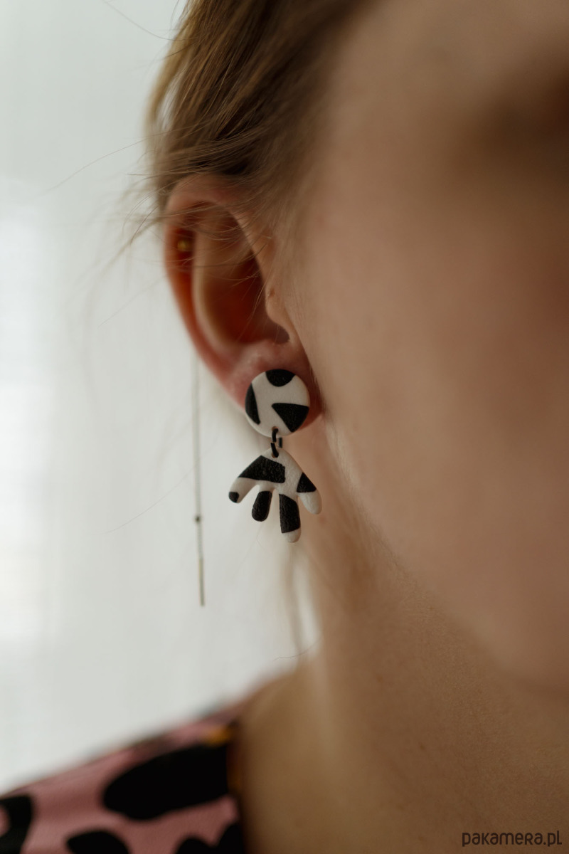 Wiszące kolczyki inspirowane twórczością Henri Matisse- MINI WERSJA. Każdy element jest wykonany, wycinany i szlifowany ręcznie z dbałością o każdy szczegół.