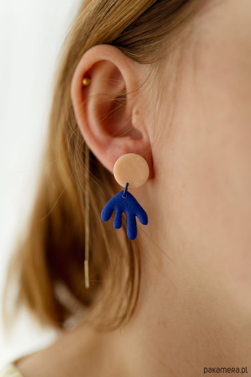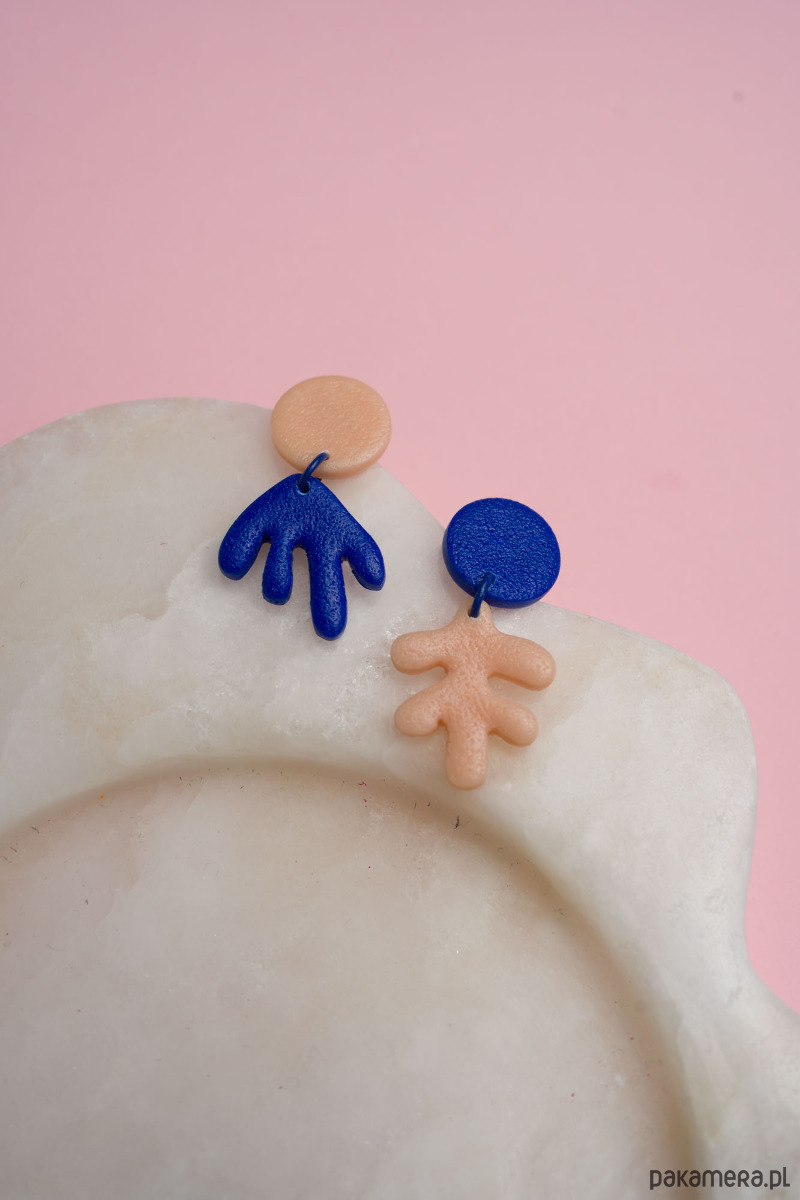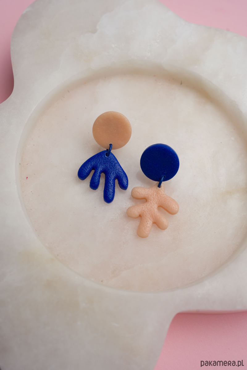 Wiszące kolczyki inspirowane twórczością Henri Matisse- MINI WERSJA. Każdy element jest wykonany, wycinany i szlifowany ręcznie z dbałością o każdy szczegół.