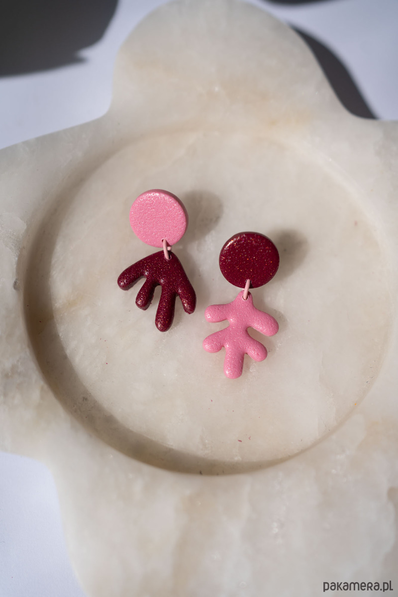 Wiszące kolczyki inspirowane twórczością Henri Matisse- MINI WERSJA. Każdy element jest wykonany, wycinany i szlifowany ręcznie z dbałością o każdy szczegół.