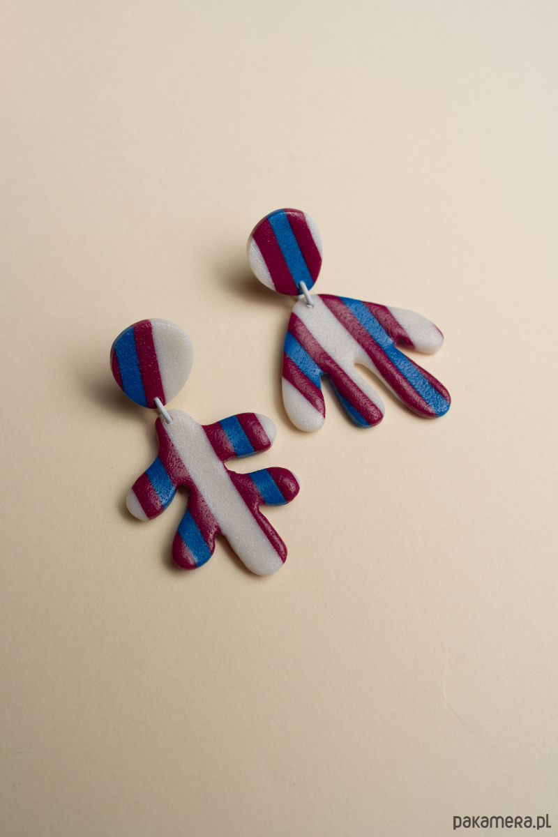 Wiszące kolczyki inspirowane twórczością Henri Matisse. Każdy element jest wykonany, wycinany i szlifowany ręcznie z dbałością o każdy szczegół.