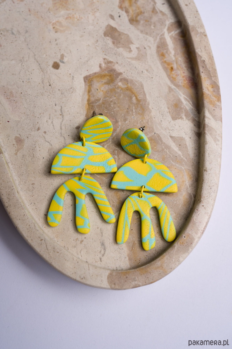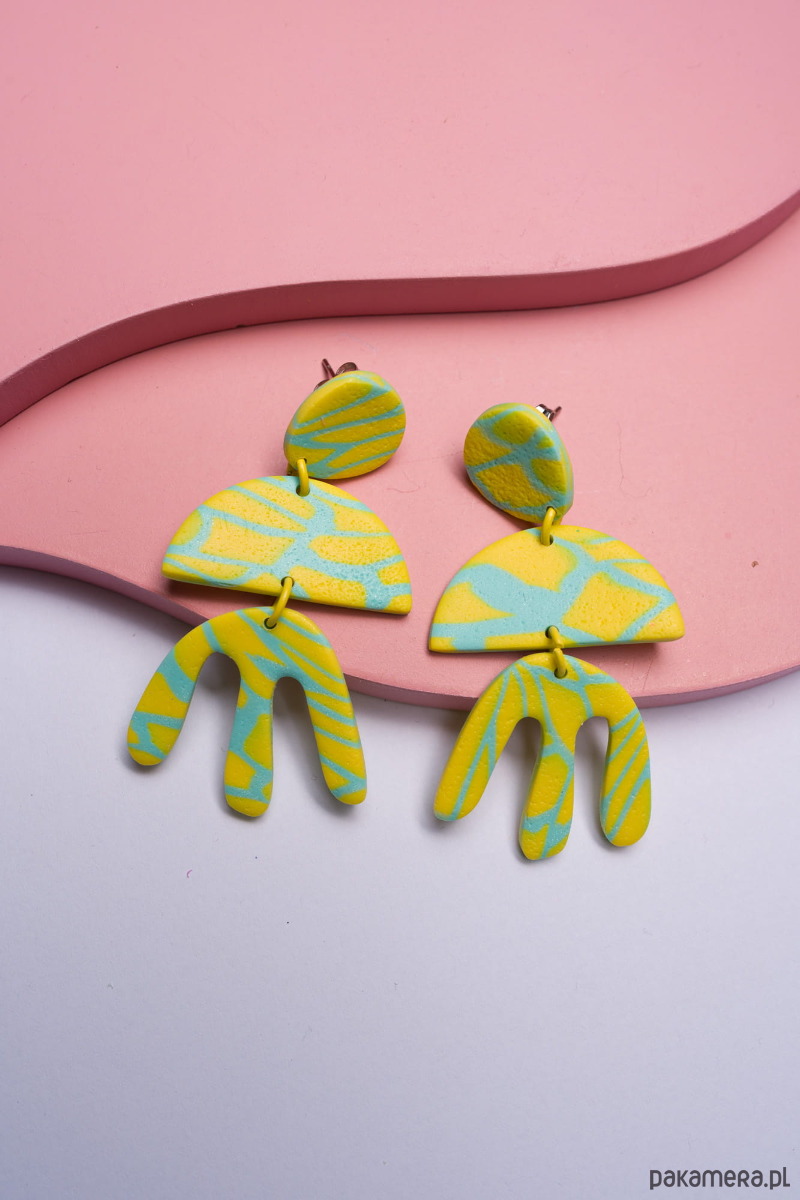 Wiszące kolczyki inspirowane twórczością Henri Matisse. Subtelne, delikatne rękodzieło na codzień i na specjalne okazje. Kolczyki są wykonane, z najwyższą precyzją, przy użyciu starannie dobranych, wysokiej jakości materiałów.