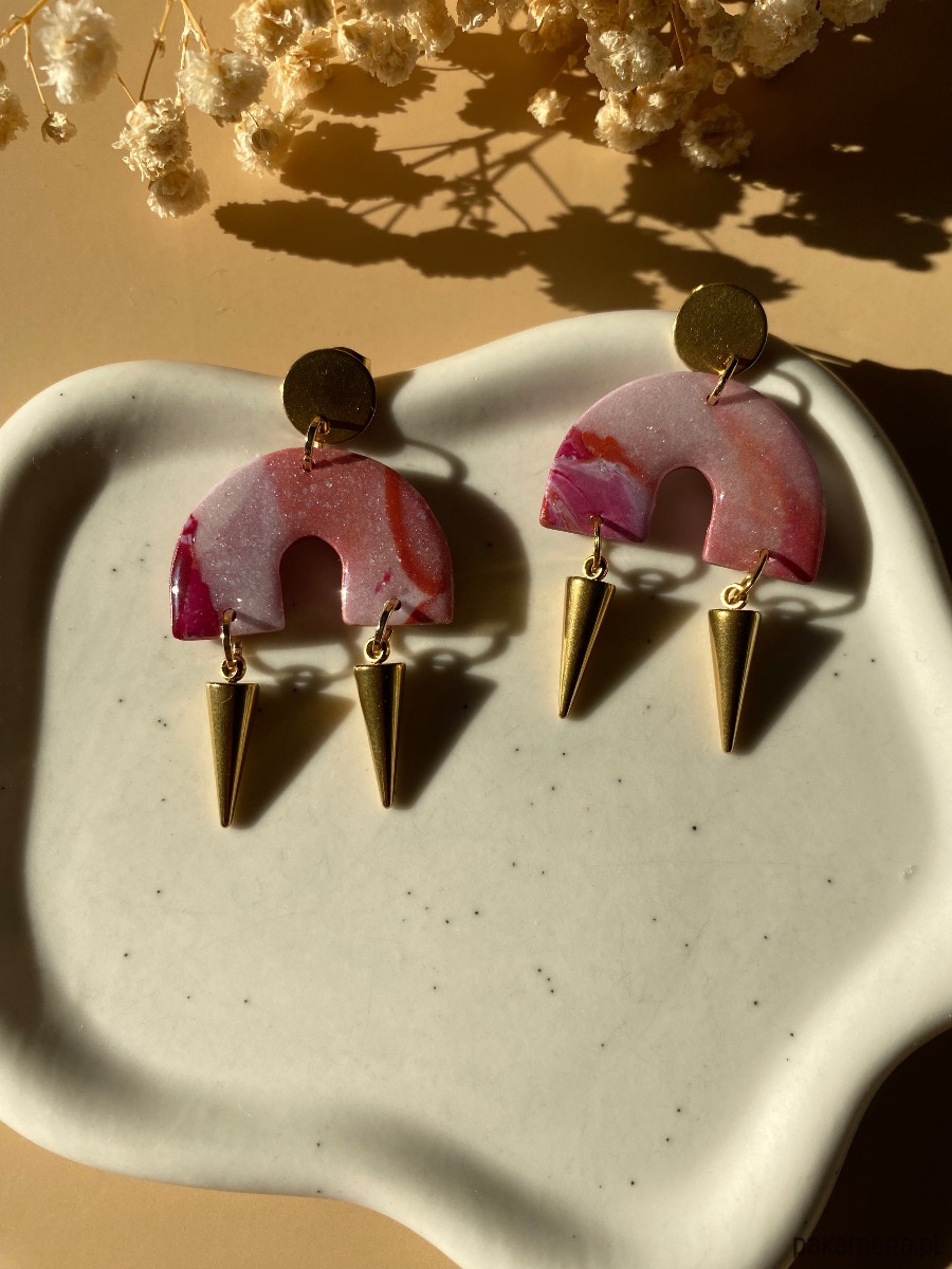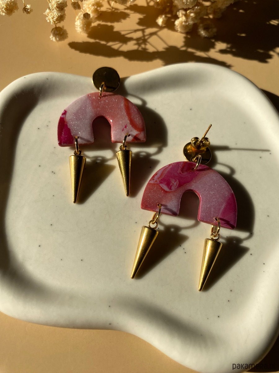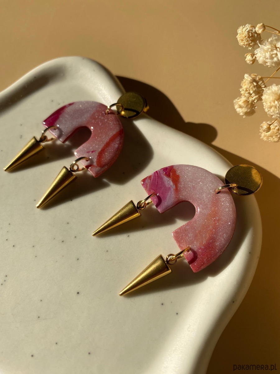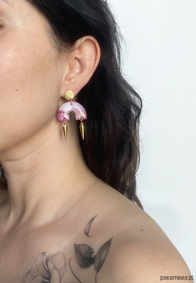 Wiszące kolczyki łuki z 2 kolcami ze stali nierdzewnej.Kolczyki z pazurem, dzięki którym na pewno się wyróżnisz 😉 Z przodu i z tyłu pokryte żywicą.