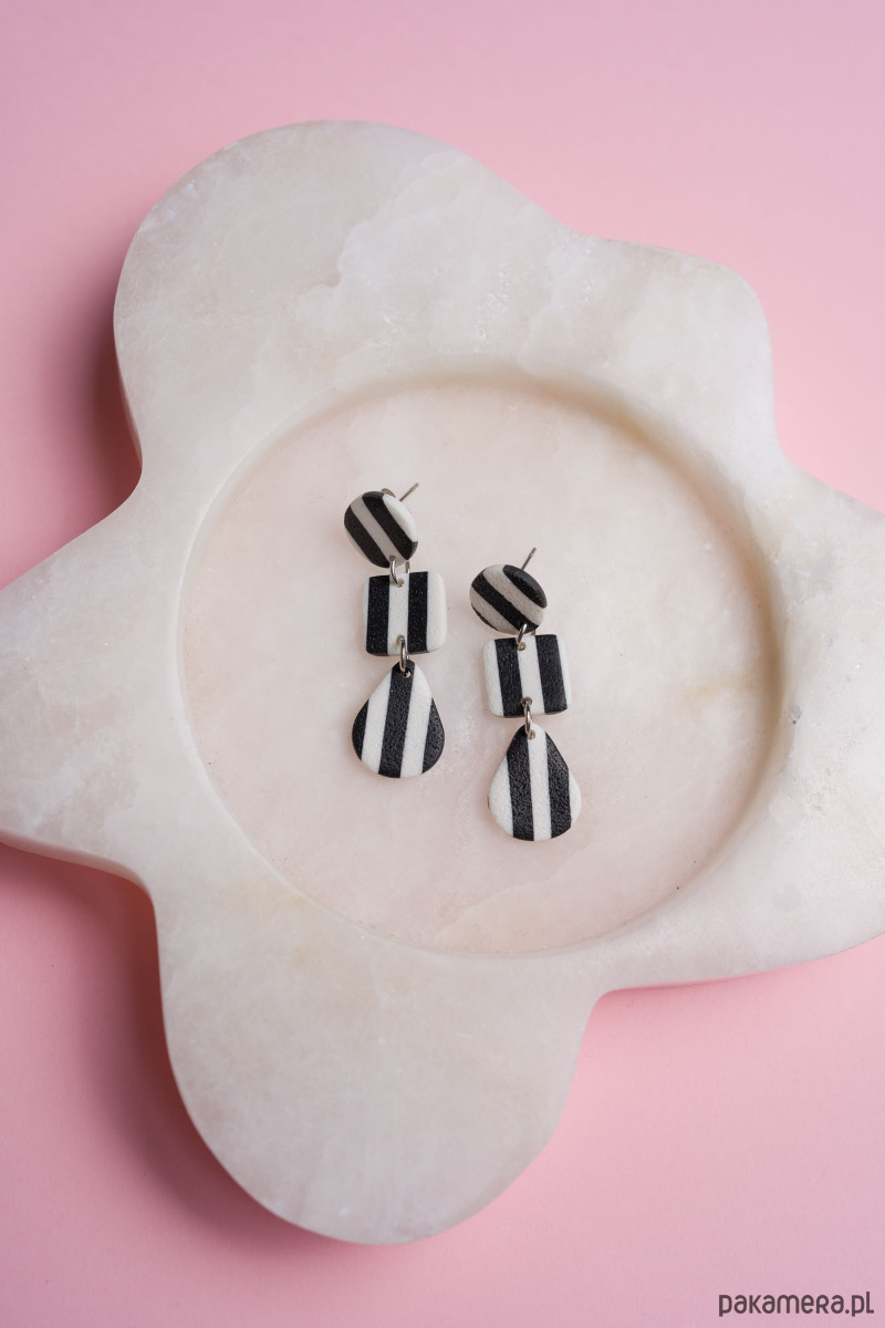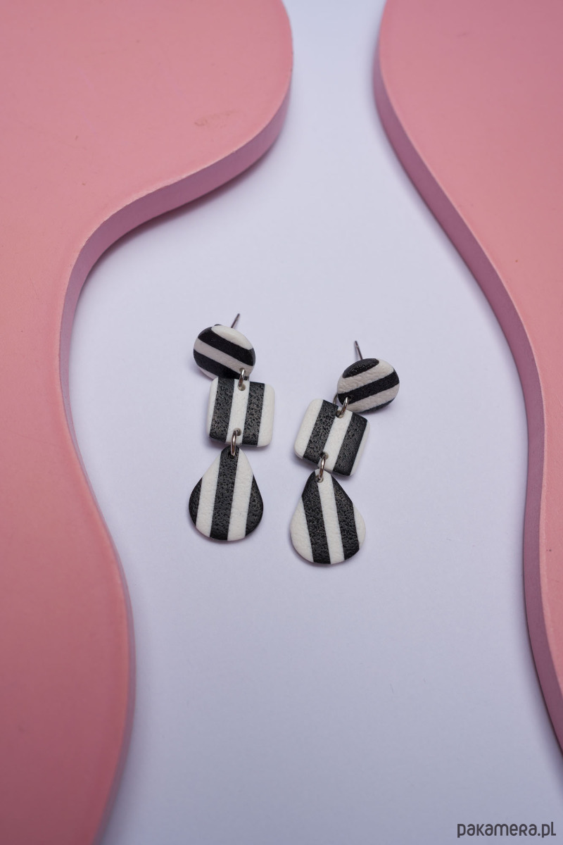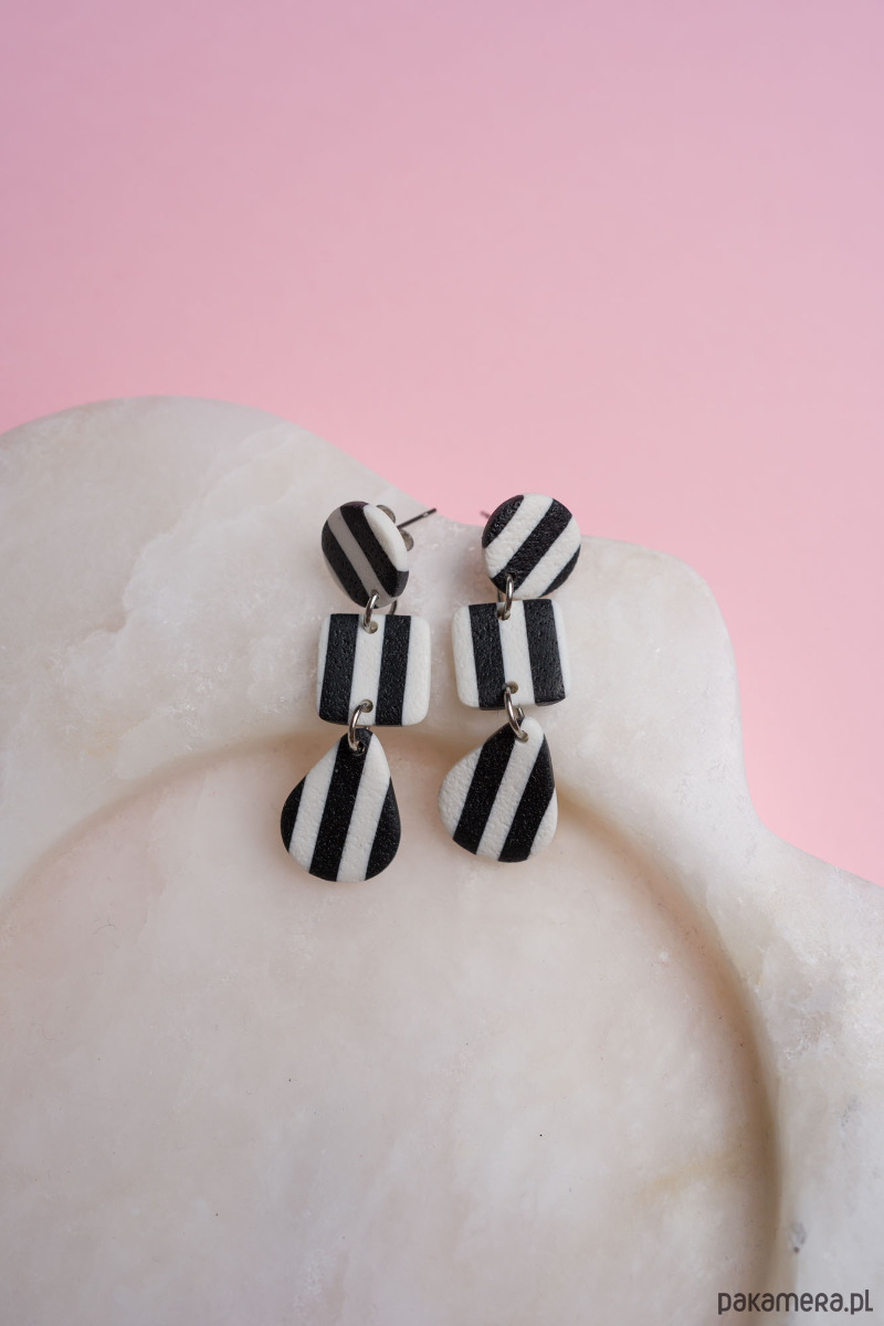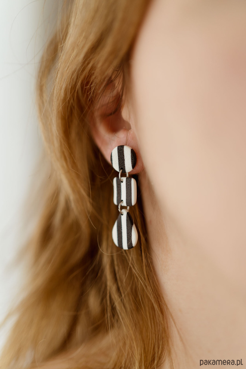 Wiszące sztyfty łańcuszki w paski. Tworzone ręcznie z ultralekkiej gliny polimerowej z dbałością o każdy szczegół. Tworzę dla oryginalnych kobiet, które przez strój i dodatki chcą wyrazić siebie.