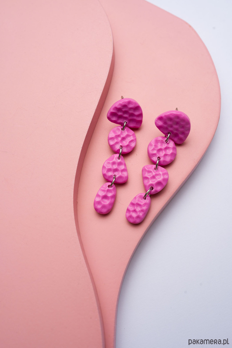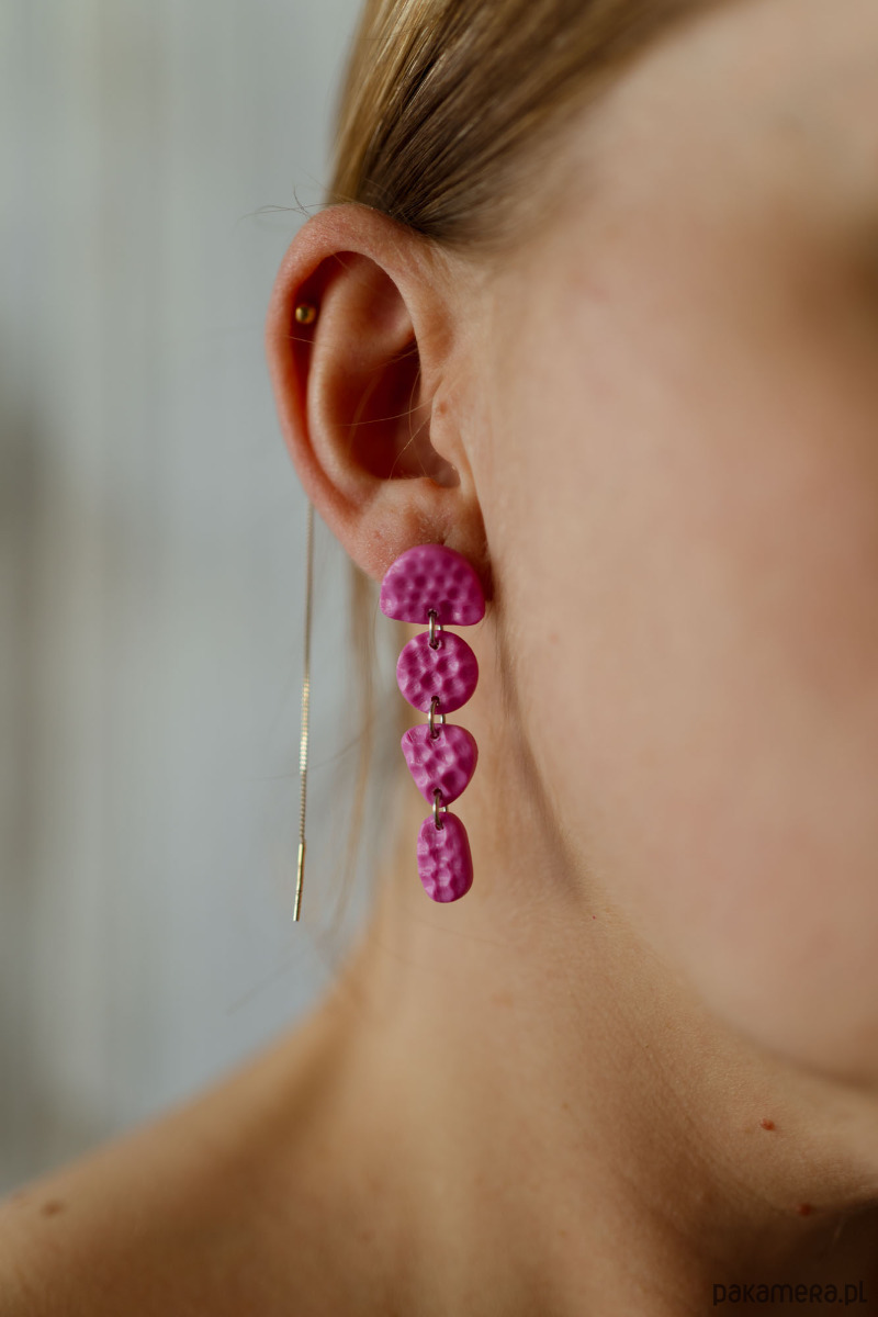 Wiszące sztyfty łańcuszki z gniecioną fakturą. Tworzone ręcznie z ultralekkiej gliny polimerowej z dbałością o każdy szczegół. Tworzę dla oryginalnych kobiet, które przez strój i dodatki chcą wyrazić siebie.