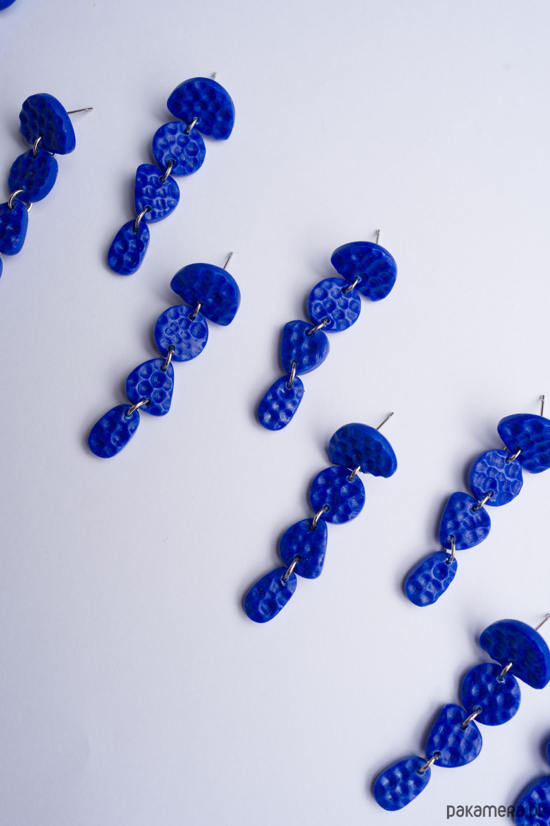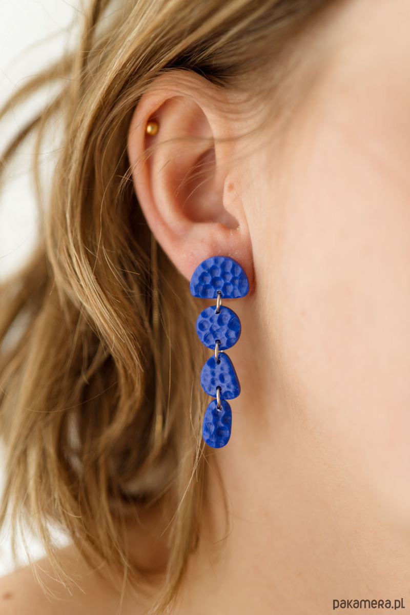 Wiszące sztyfty łańcuszki z gniecioną fakturą. Tworzone ręcznie z ultralekkiej gliny polimerowej z dbałością o każdy szczegół. Tworzę dla oryginalnych kobiet, które przez strój i dodatki chcą wyrazić siebie.