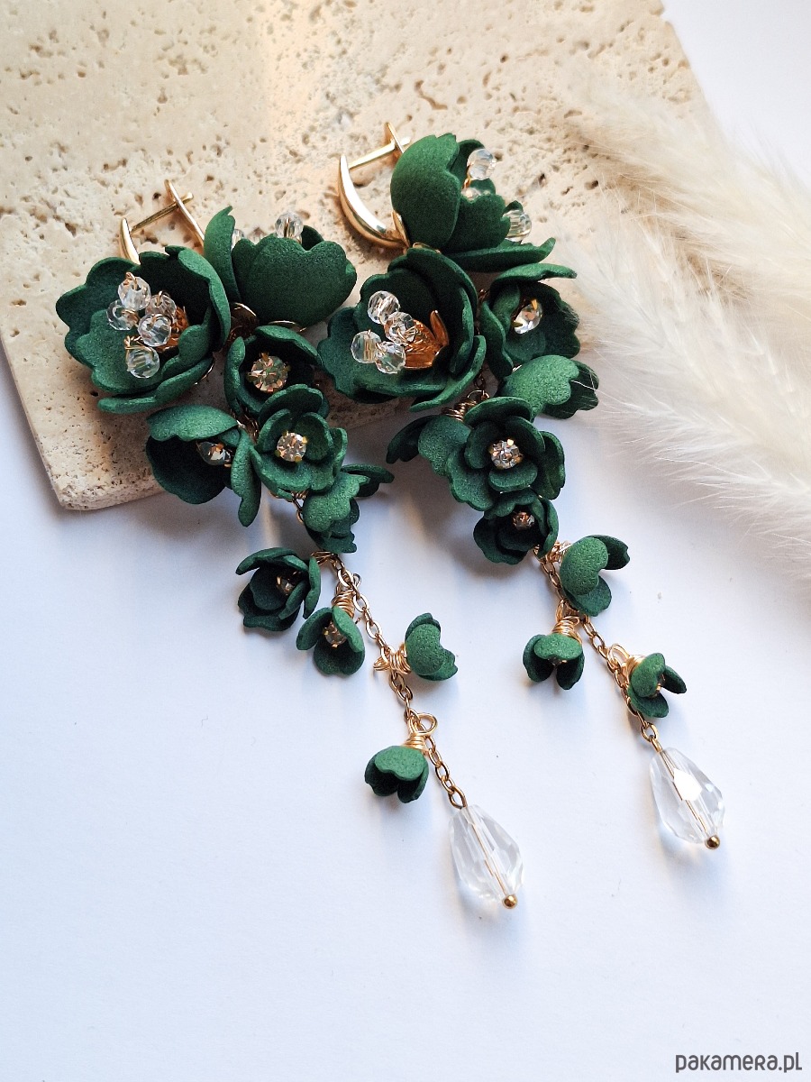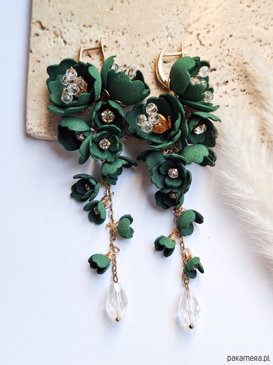 Ręcznie robione kolczyki w formie zielonych kwiatów