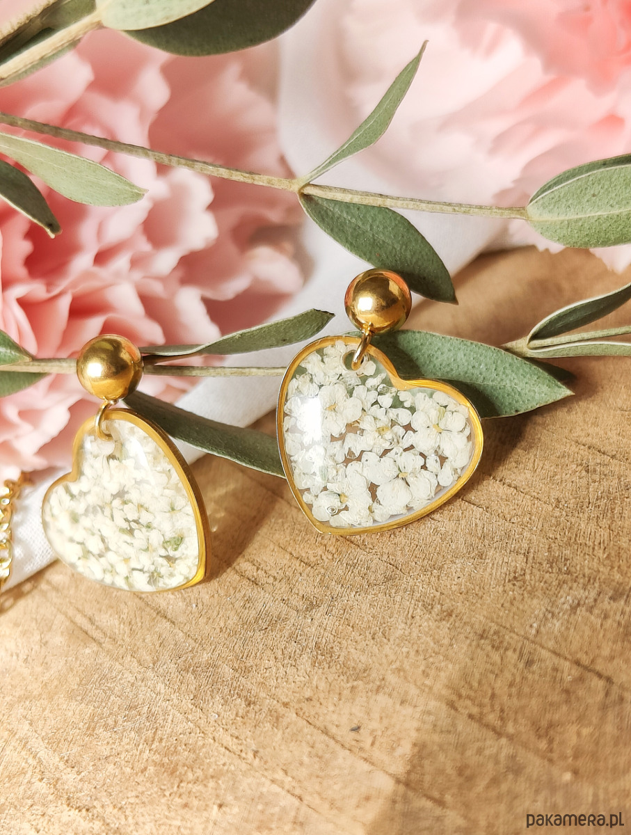 Kolczyki serce z żywicy epoksydowej i suszonych kwiatów