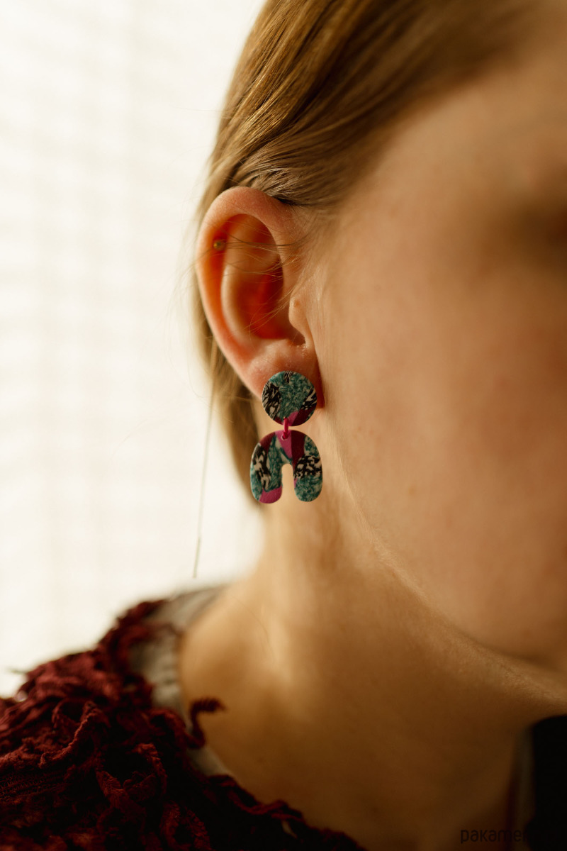 Wiszące kolczyki SOFIA- MINI WERSJA. Każdy element jest wykonany, wycinany i szlifowany ręcznie z dbałością o każdy szczegół.Wzór ze zdjęcia jest wzorem poglądowym. Każda para różni się nieznacznie od siebie - magia rękodzieła :)