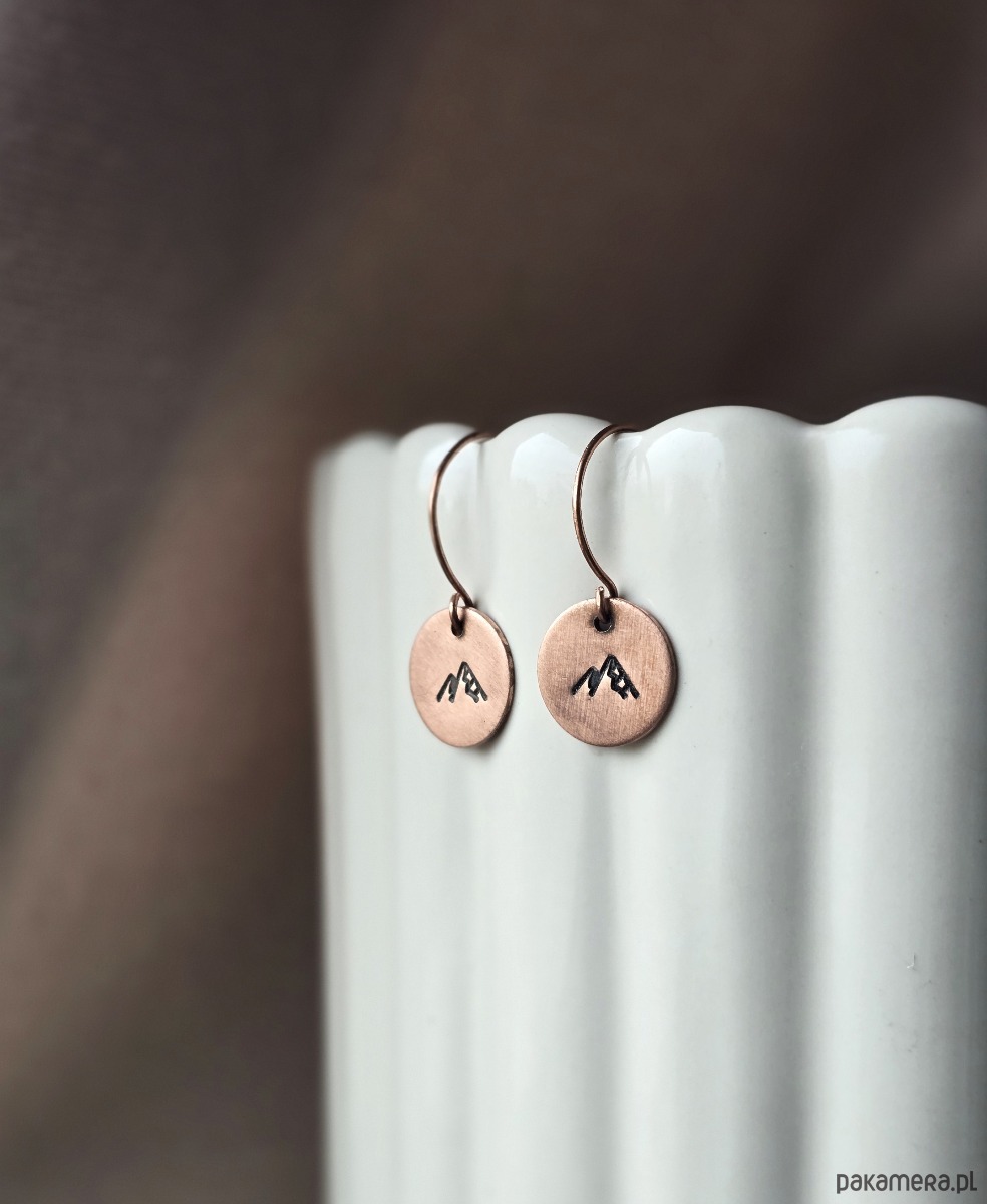 Artystyczne kolczyki z motywem gór wykonane ręcznie tradycyjnymi technikami złotniczymi