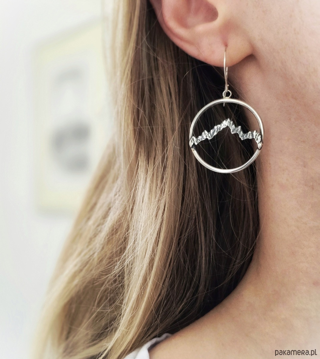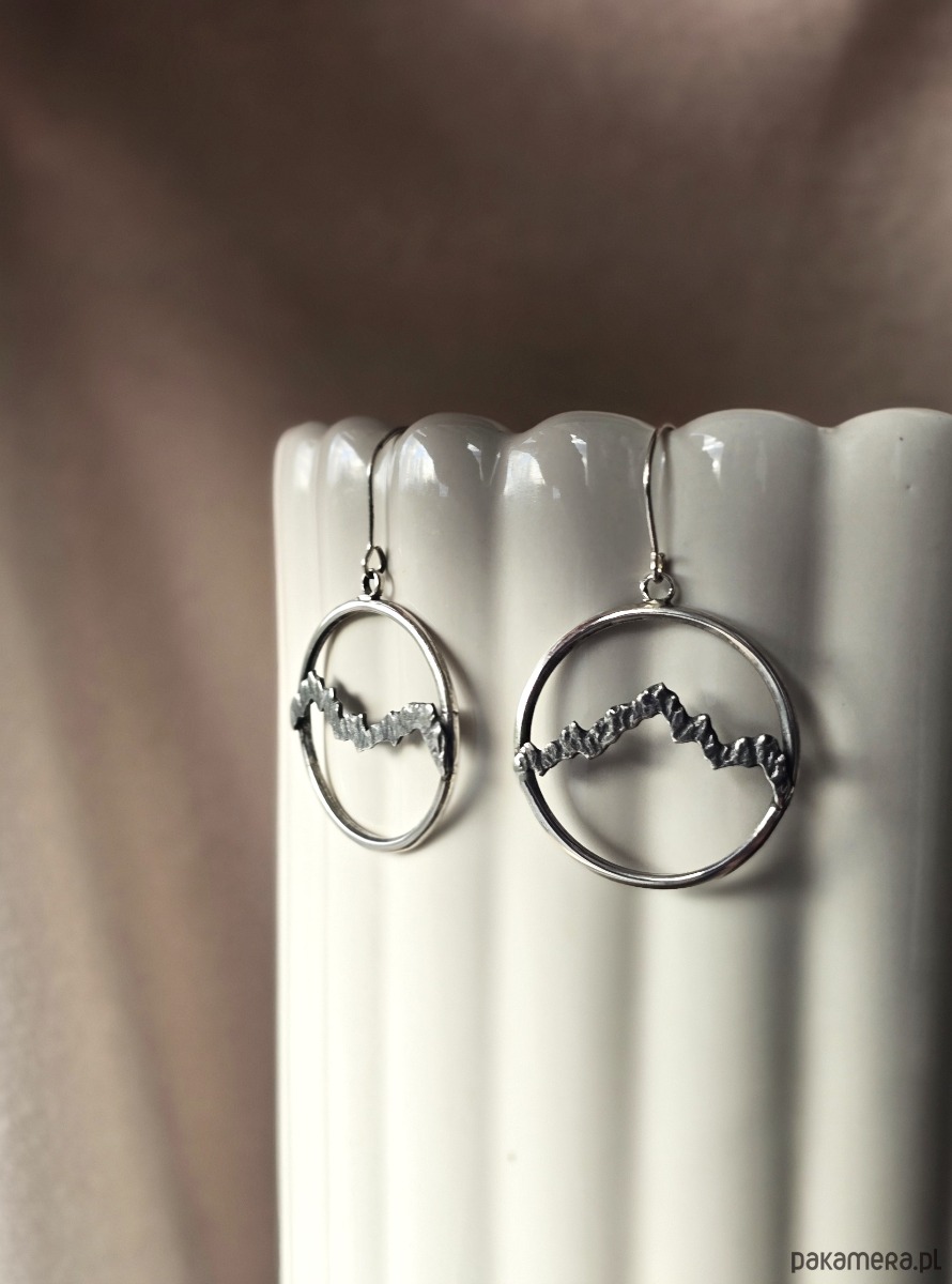 Artystyczne kolczyki z motywem gór wykonane ręcznie tradycyjnymi technikami złotniczymi