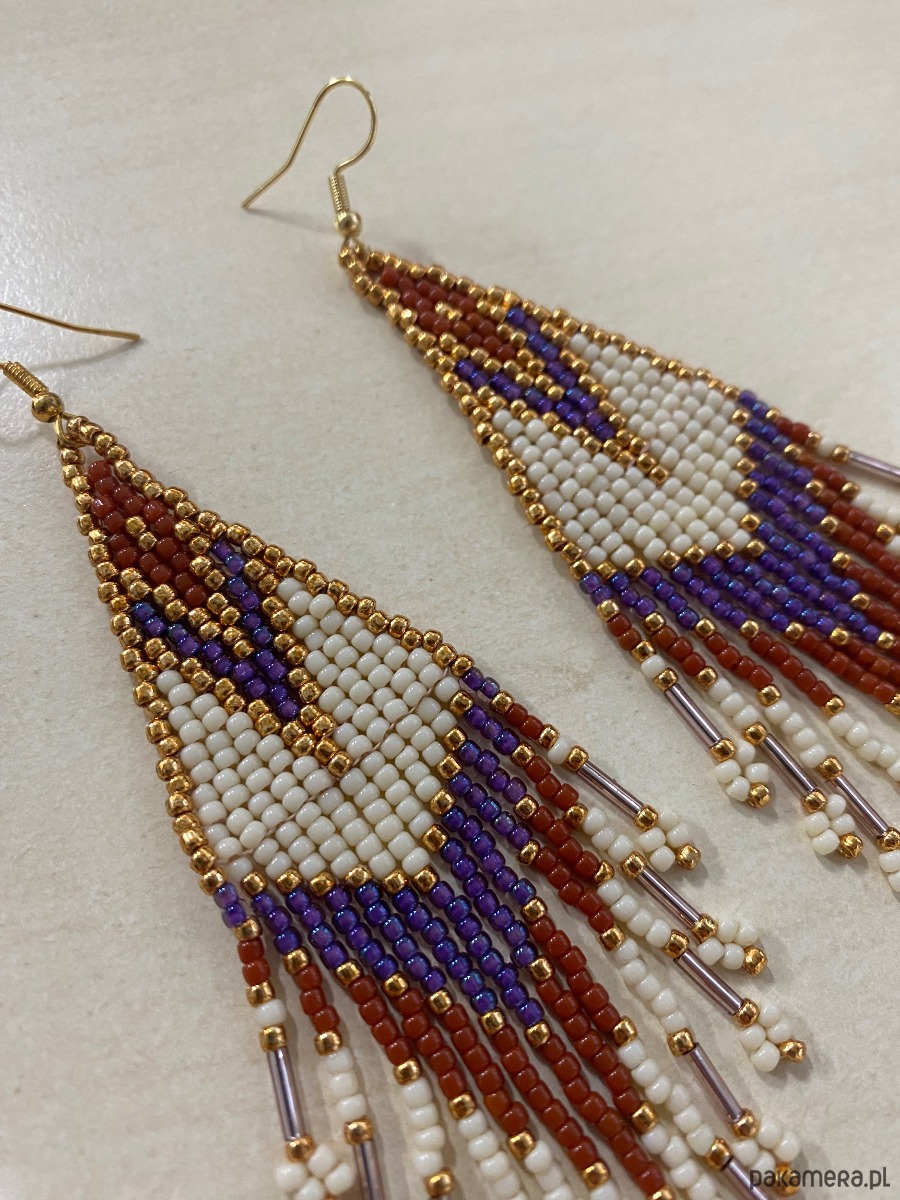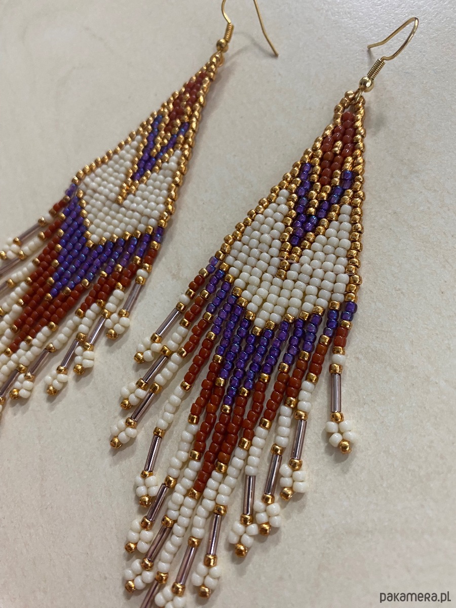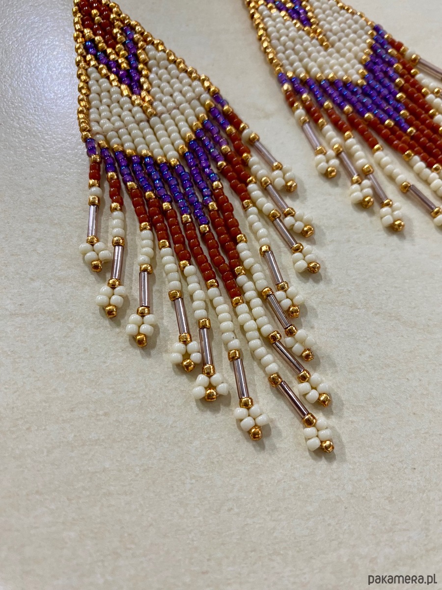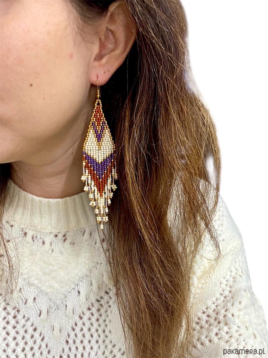 Nowoczesne, wyraziste i wyjątkowe kolczyki wykonane ze szklanych koralików Toho. Mimo długości, kolczyki są lekkie i zwiewne.