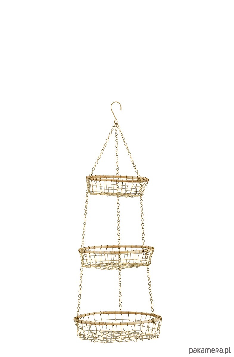 Produkt składa się z 3 plecionych koszyków połączonych ze sobą. Całość posiada wieszak co zwiększa jej funkcjonalność. Idealnie sprawdza się do przechowywania, pasuje idealnie do wnętrz w stylu boho.