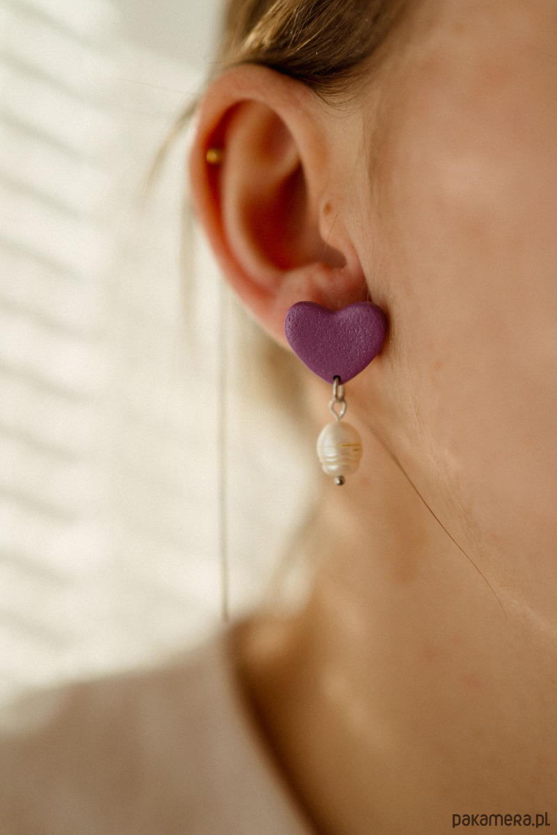 Wiszące kolczyki SERCA Z perłą słodkowodną. Każdy element jest wykonany, wycinany i szlifowany ręcznie z dbałością o każdy szczegół.