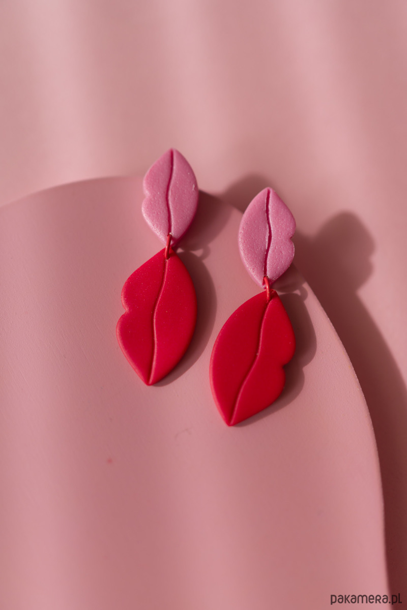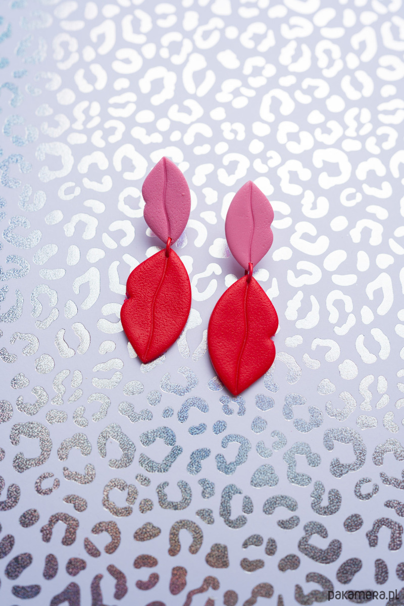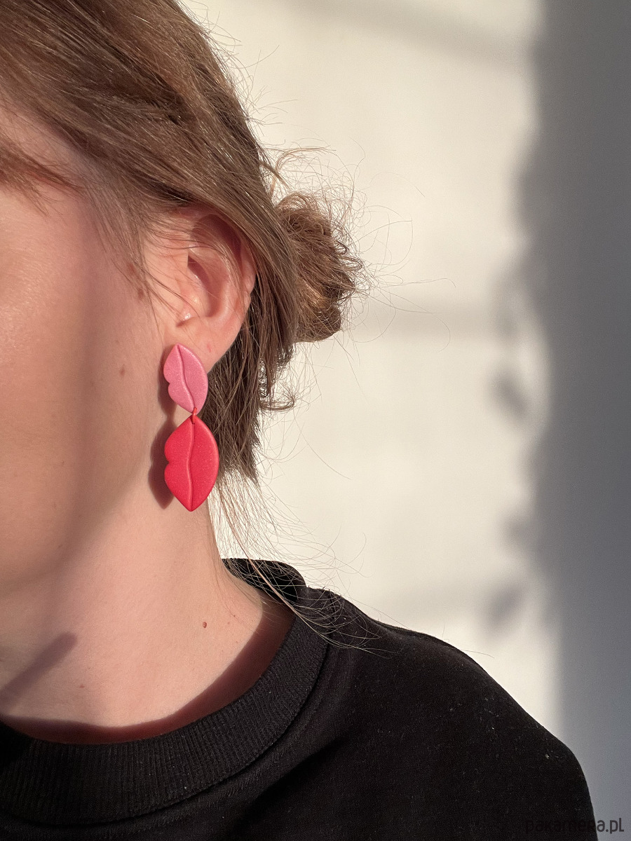 Wiszące kolczyki sztyfty USTA. Każdy element jest wykonany, wycinany i szlifowany ręcznie z dbałością o każdy szczegół.