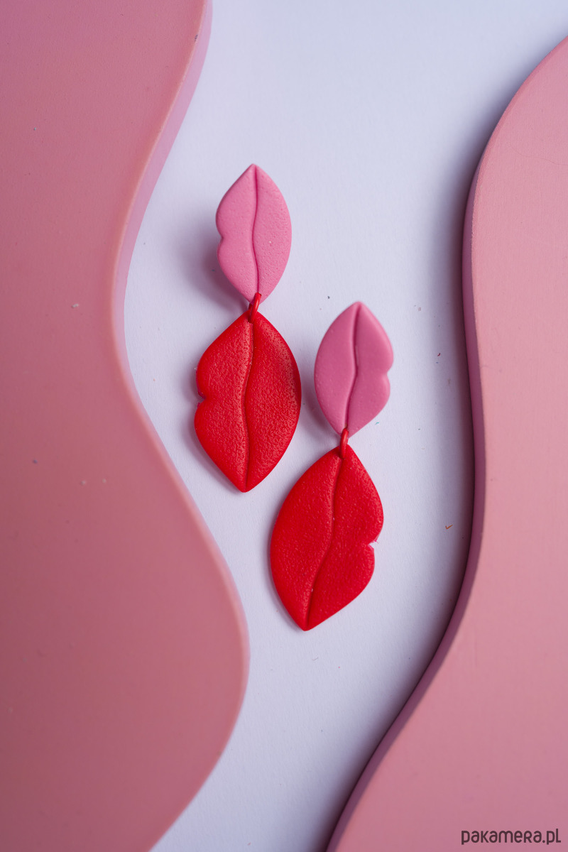 Wiszące kolczyki sztyfty USTA. Każdy element jest wykonany, wycinany i szlifowany ręcznie z dbałością o każdy szczegół.