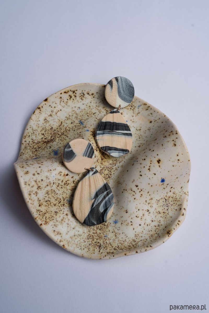 Wiszące kolczyki LISTKI z fakturą. Każdy element jest wykonany, wycinany i szlifowany ręcznie z dbałością o każdy szczegół. Wzór ze zdjęcia jest wzorem poglądowym. Każda para różni się nieznacznie od siebie - magia rękodzieła :)