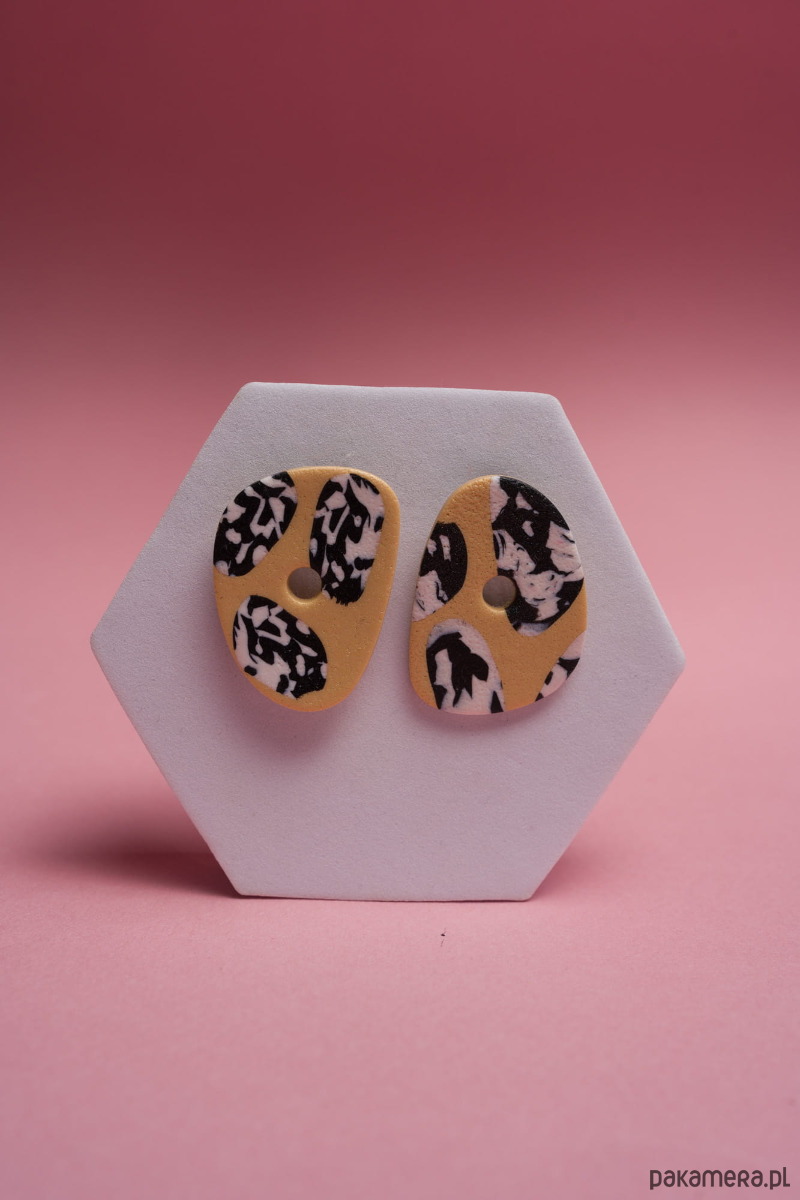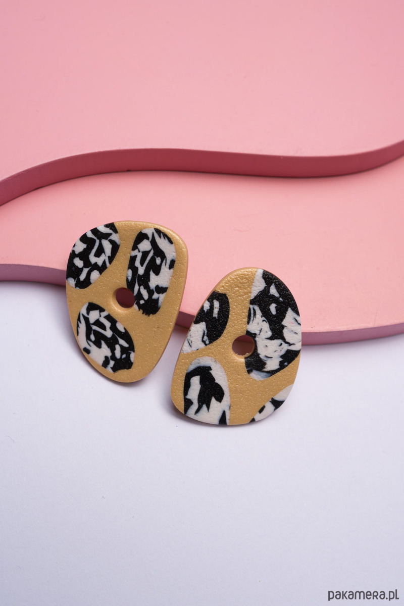 Kolczyki sztyfty w organicznym kształcie w abstrakcyjny wzór. Każdy element jest wykonany, wycinany i szlifowany ręcznie z dbałością o każdy szczegół. Wzór ze zdjęcia jest wzorem poglądowym, zawsze wychodzi inaczej - magia rękodzieła.