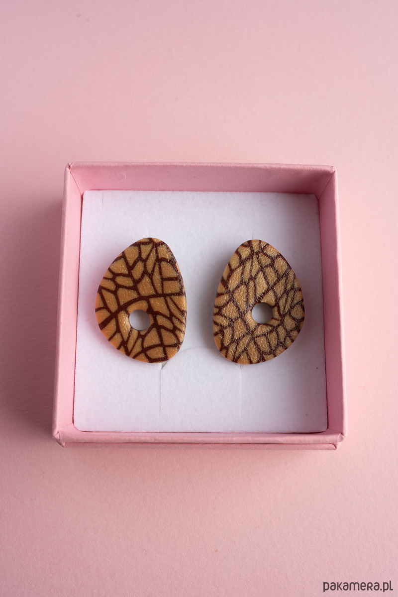 Kolczyki sztyfty w organicznym kształcie w scandi stylu. Każdy element jest wykonany, wycinany i szlifowany ręcznie z dbałością o każdy szczegół.