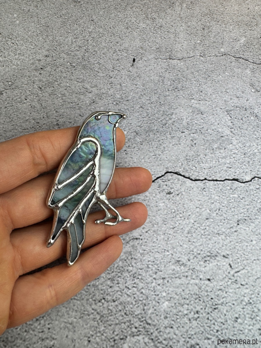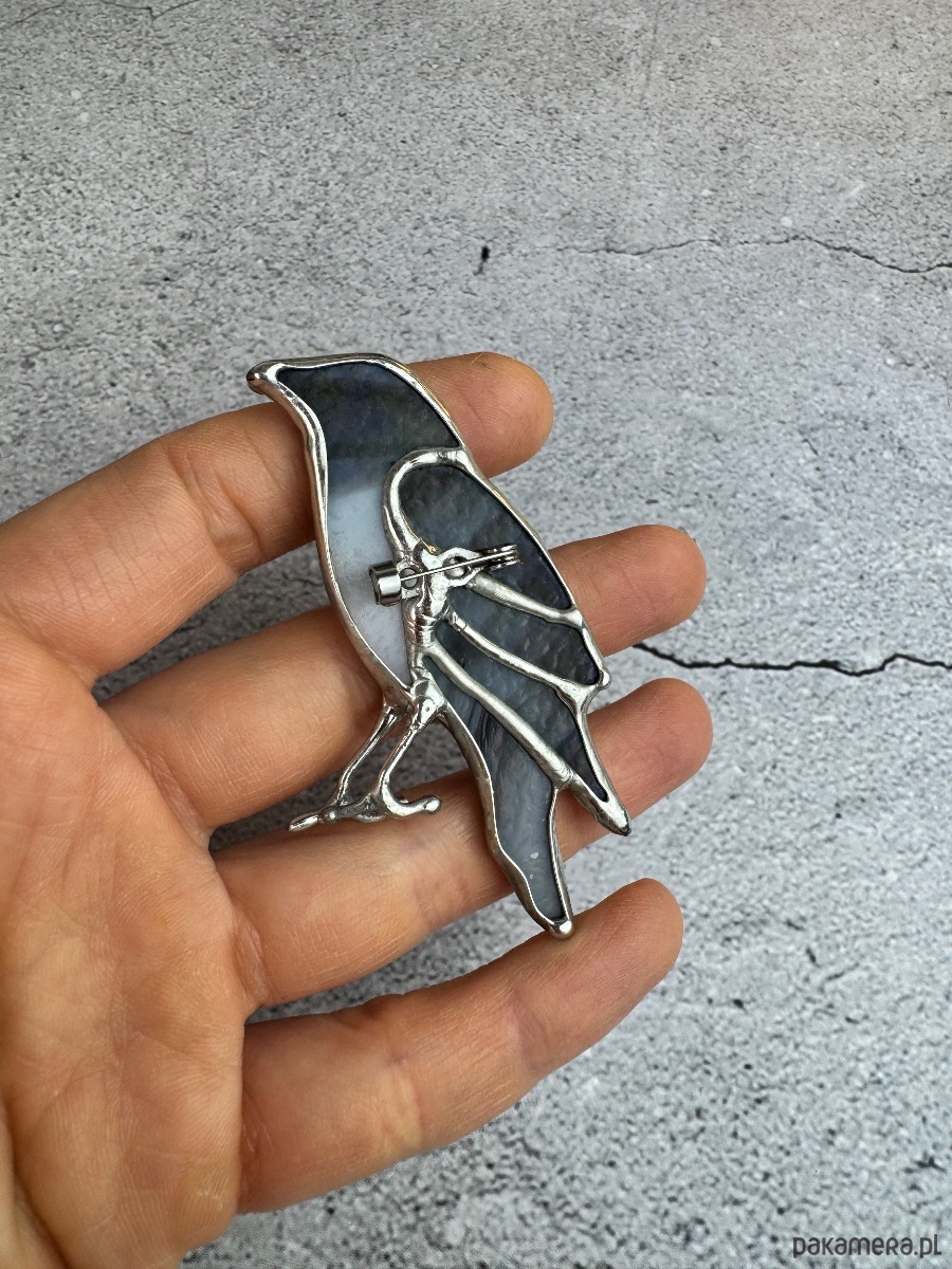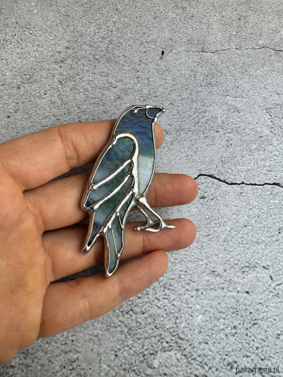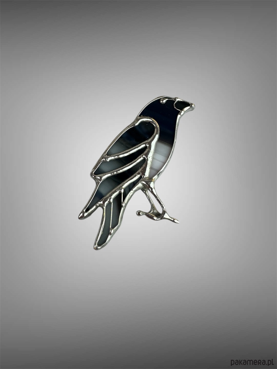 Witrażowa broszka ptak Kruk