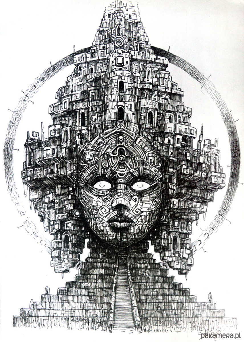 Wizje ze świata Azteckiej Królowej *rysunek piórkiem