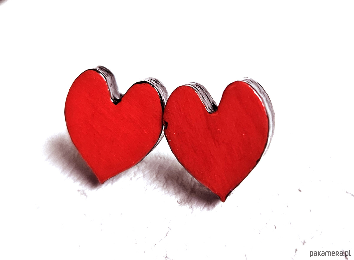 kolczyki drewniane, starannie pomalowane farbami akrylowymi i zabezpieczone wielokrotnie lakierem, sztyfty posrebrzane, szerokość: 1,2 cm, bardzo lekkie