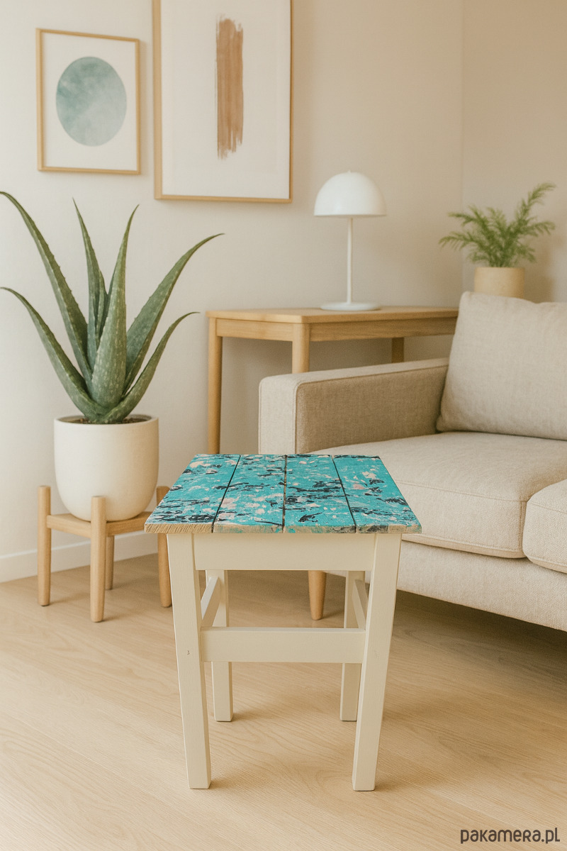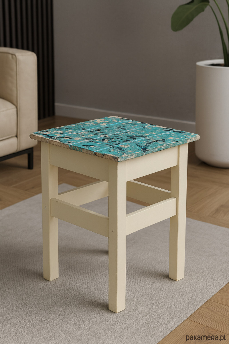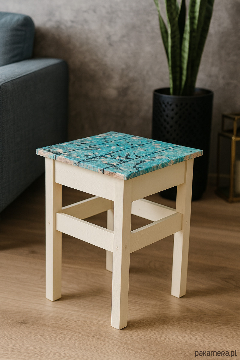 Własnoręcznie malowany handmade taboret w pastelowych kolorach art deco