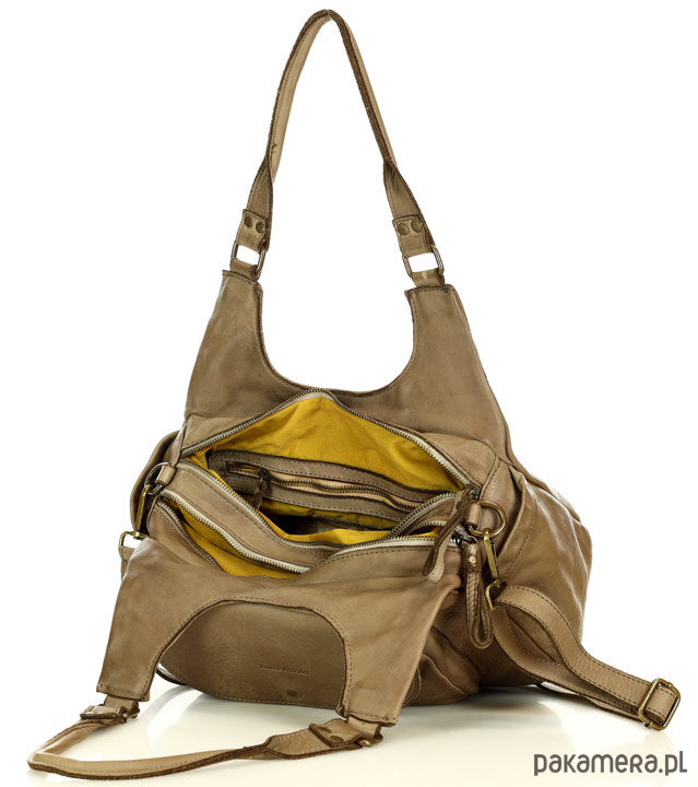 Dopełnieniem całości jest wykonanie z wysokiej jakości skóry naturalnej licowej. Jest to skóra bydlęca o gładkiej powierzchni. Charakterystyczna dla tego typu skóry jest duża wytrzymałość na obciążenie. Torebka jest ręcznie szyta, a następnie W CAŁOŚCI farbowana. Dzięki procesom postarzania, uszlachetniania i zmiękczania skóry jest miękka i aksamitna w dotyku. Barwniki użyte do farbowania skóry to wyłącznie barwniki roślinne, nieuczulające i całkiem bezpieczne.