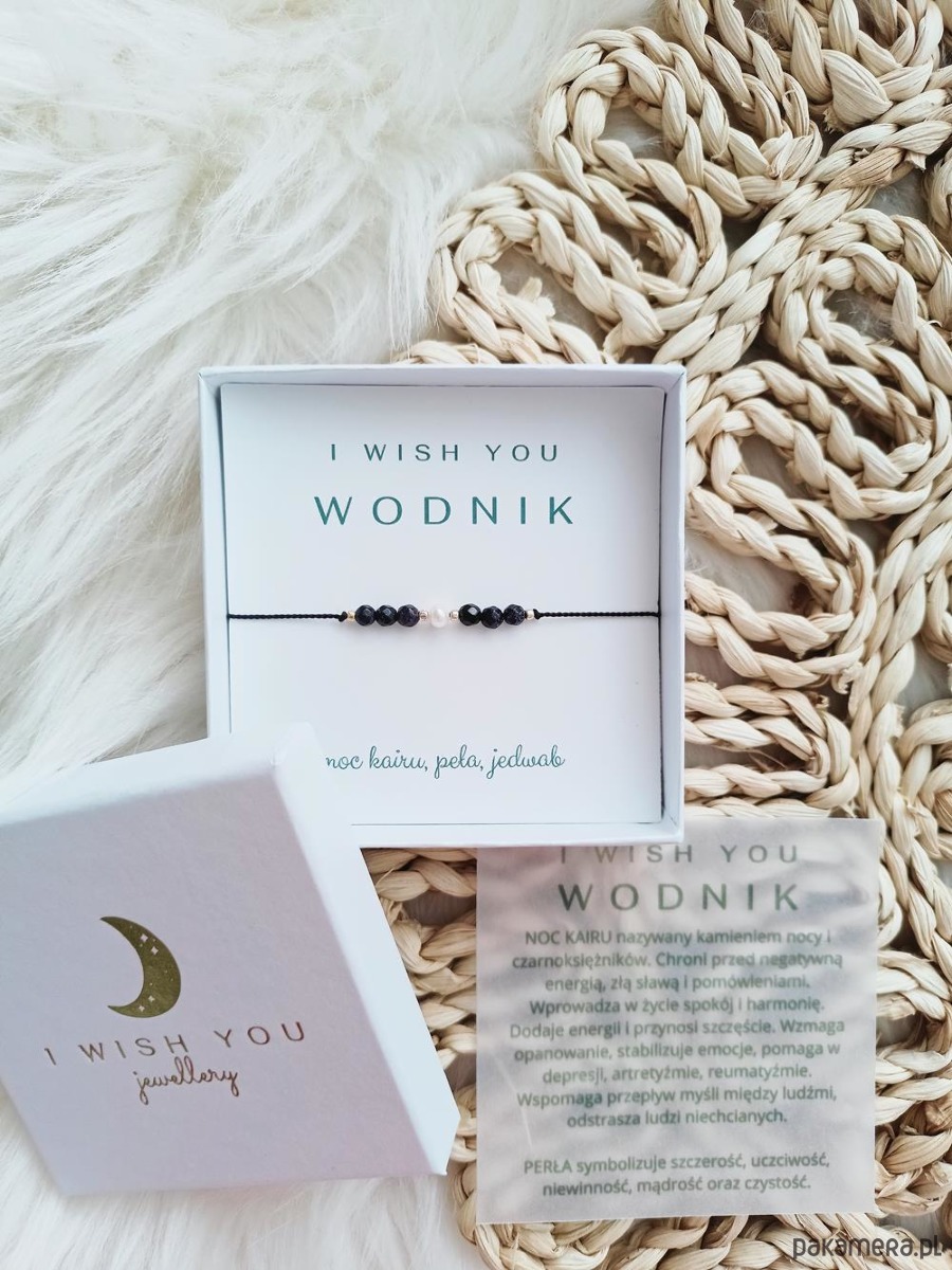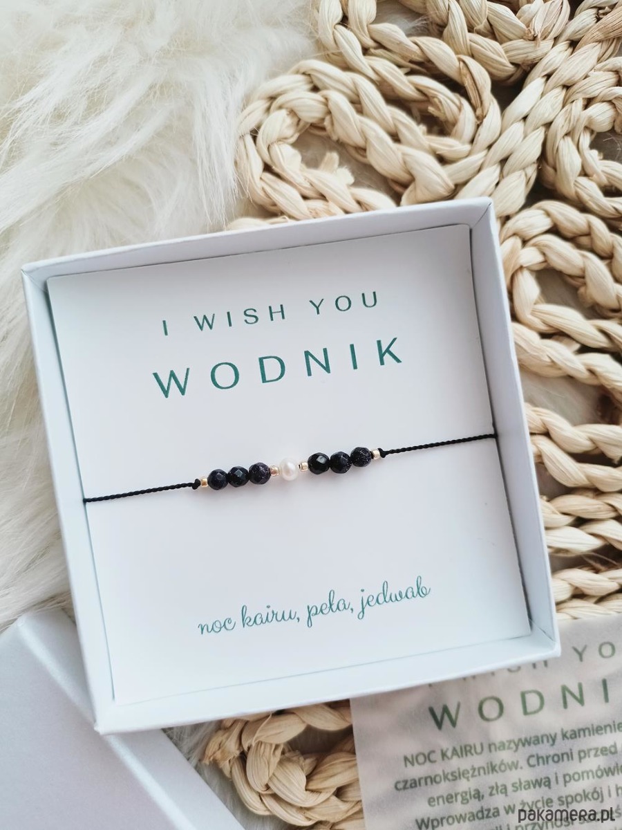 WODNIK - bransoletka zodiakalna - noc kairu, perła PUDEŁKO