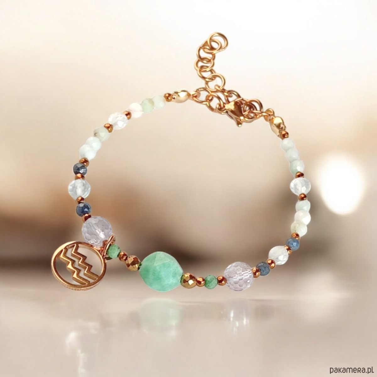 UŻYTE KAMIENIE (wielkość od 3 do 8,5mm) : amazonit, kryształ górski, ametyst, turkus, szafir, hematyt złoty.