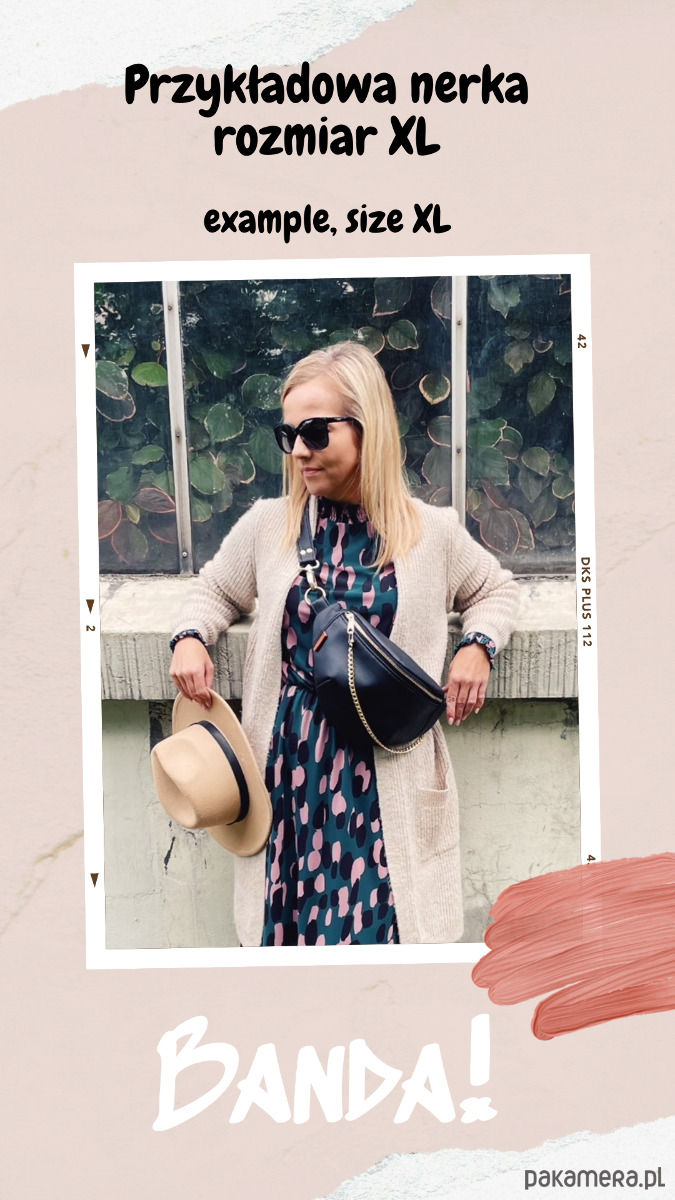 Nerkę szyjemy w 3 rozmiarach - najpopularniejszy jest rozmiar L. Można zamówić także nerkę w rozmiarze S/M i w rozmiarze XL. Niezależnie od wybranego rozmiaru z środku znajdziecie kieszonkę na zamek. Przykładowe zdjęcie wszystkich trzech rozmiarów oraz schemat z wymiarami znajdziecie w galerii produktu.