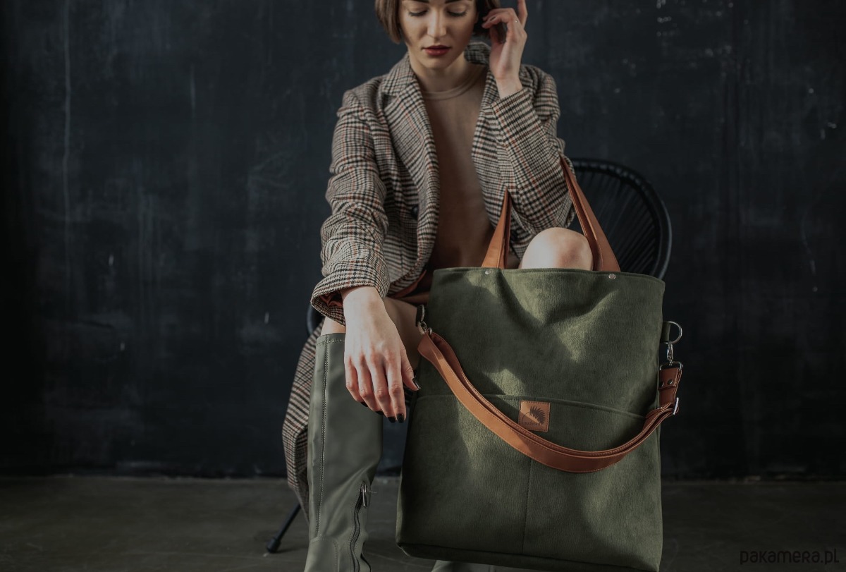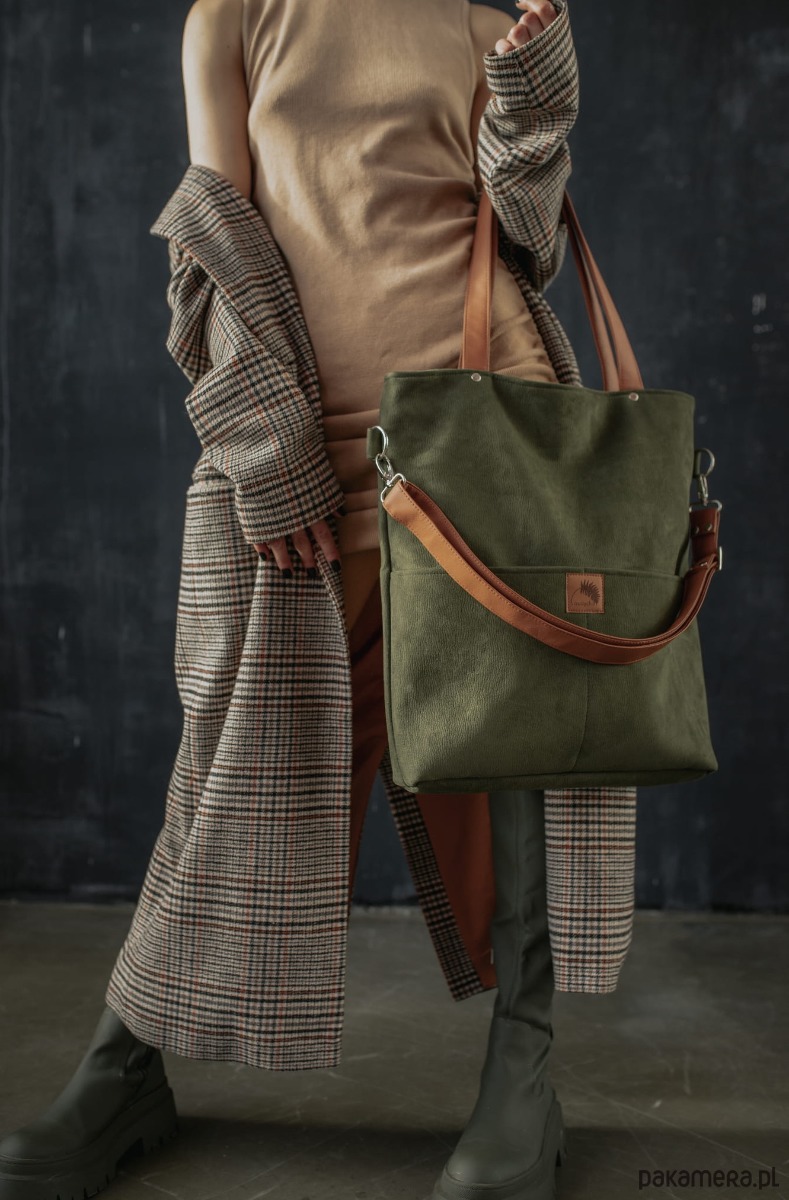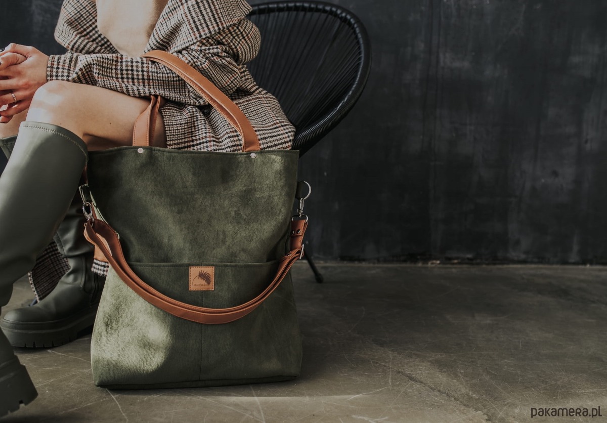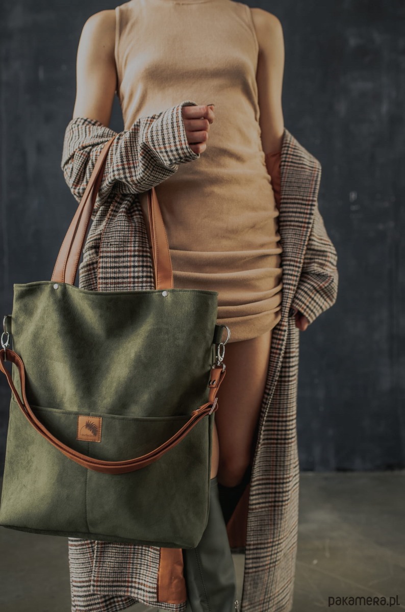 Materiał wierzchni: fantastycznej jakości gruby włoski zamsz ekologiczny typu Bukara. Łatwy w utrzymaniu czystości, wytrzymały na ścieranie. Rączki i długi pasek skóra ekologiczna, brązowa.