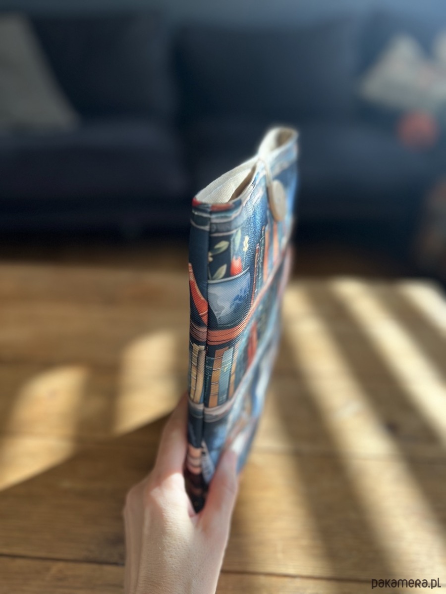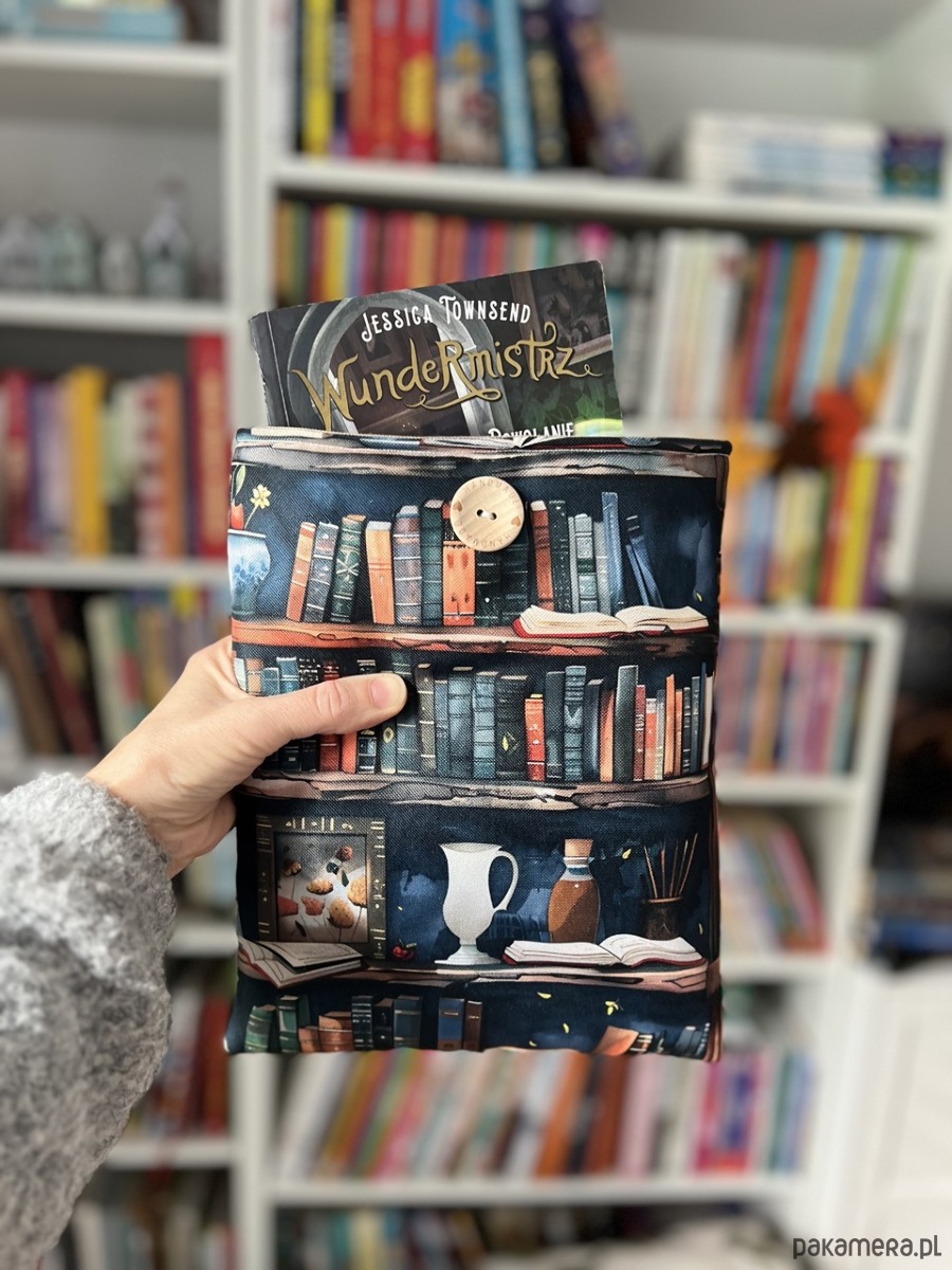 Zapinany na guzik z elastyczną gumką, świetnie trzyma zawartość w środku. Wzór z motywem książek i kwiatów zachwyci każdego miłośnika czytania i będzie też pięknym prezentem.