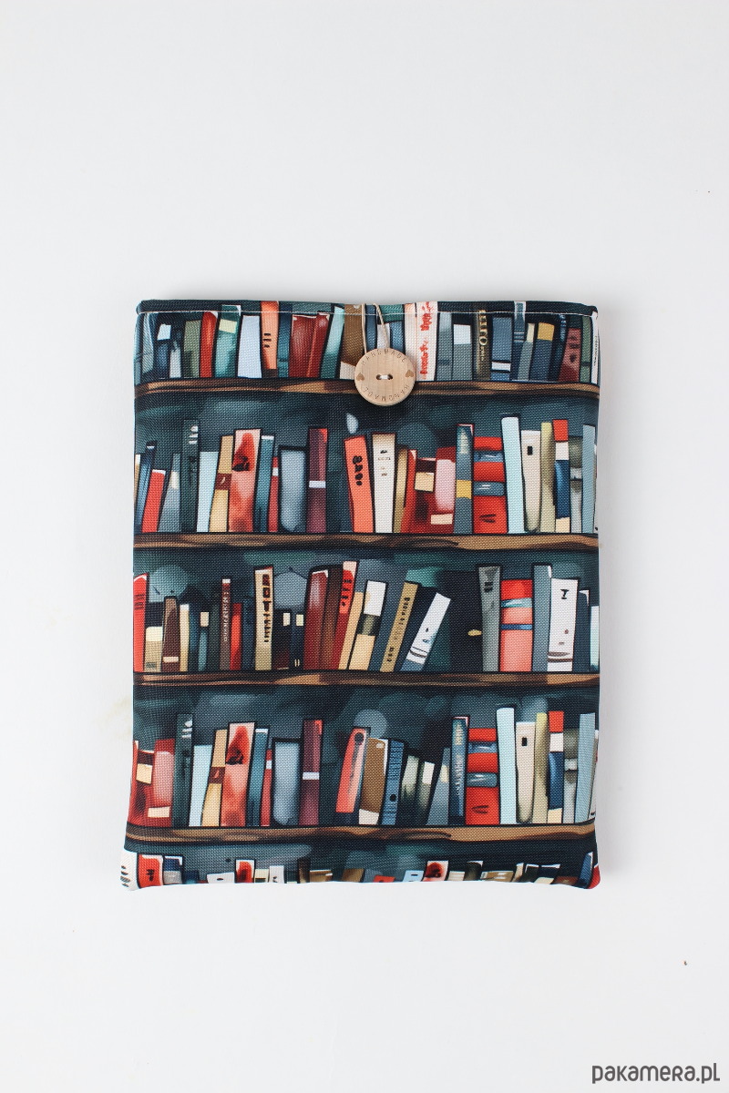 Zapinany na guzik z elastyczną gumką, świetnie trzyma zawartość w środku. Wzór z motywem książek i kwiatów zachwyci każdego miłośnika czytania i będzie też pięknym prezentem.