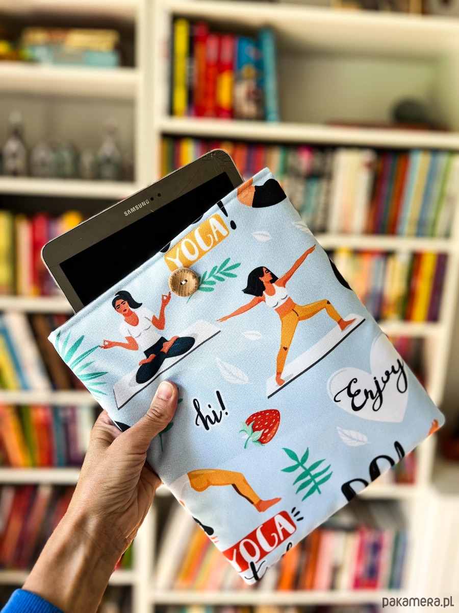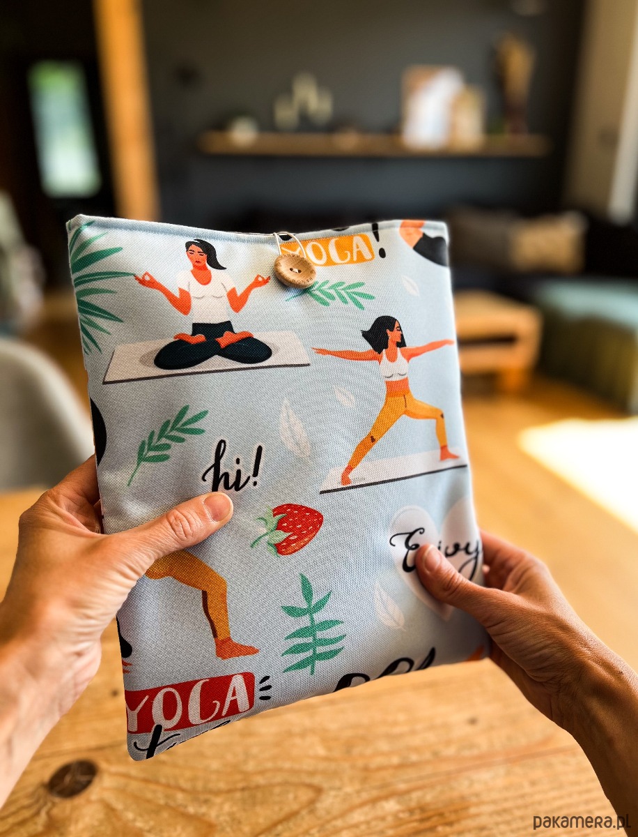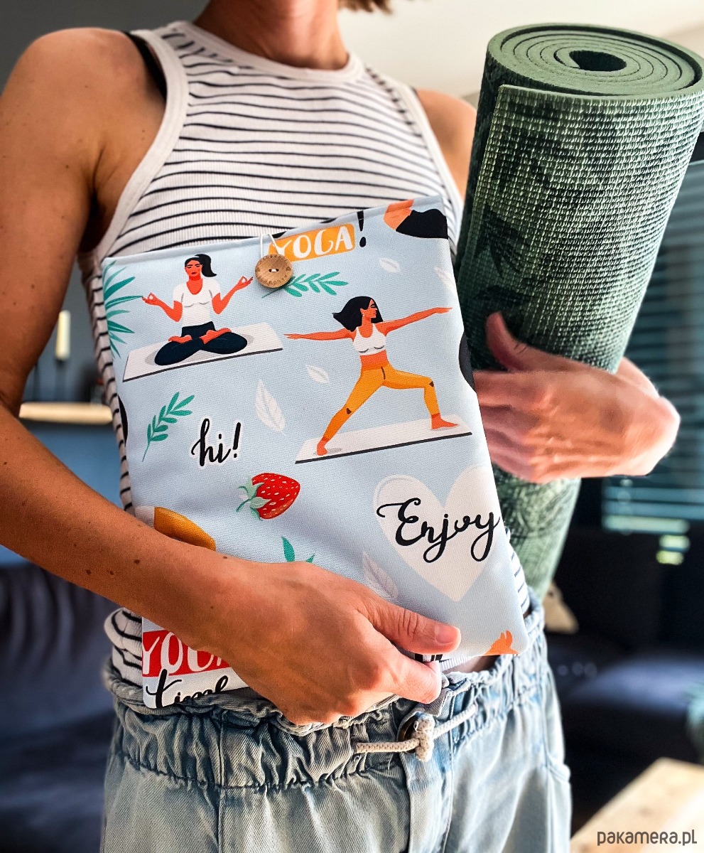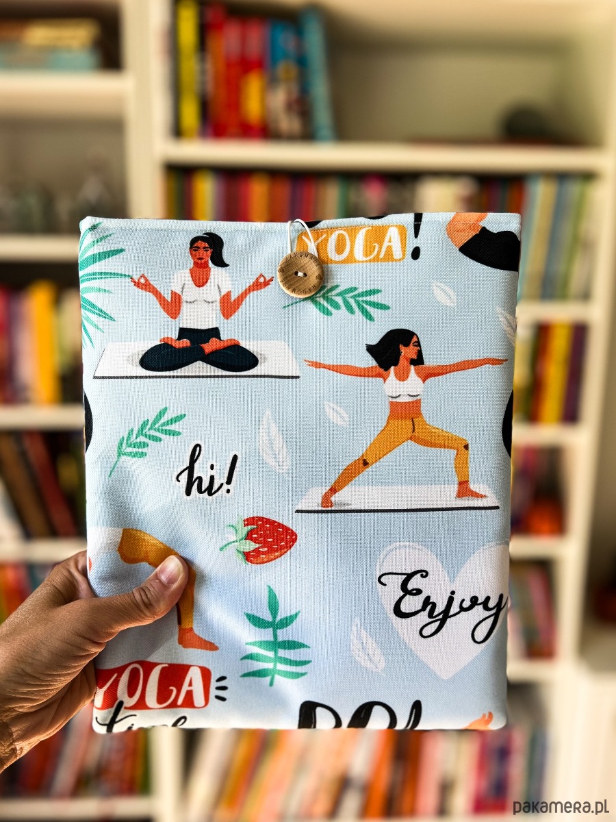 Zapinany na guzik z elastyczną gumką, świetnie trzyma zawartość w środku. Wzór z motywem jogi – różne pozycje i sylwetki – doda harmonii i spokoju każdemu czytelniczemu rytuałowi. To także wyjątkowy prezent dla miłośników jogi i książek.